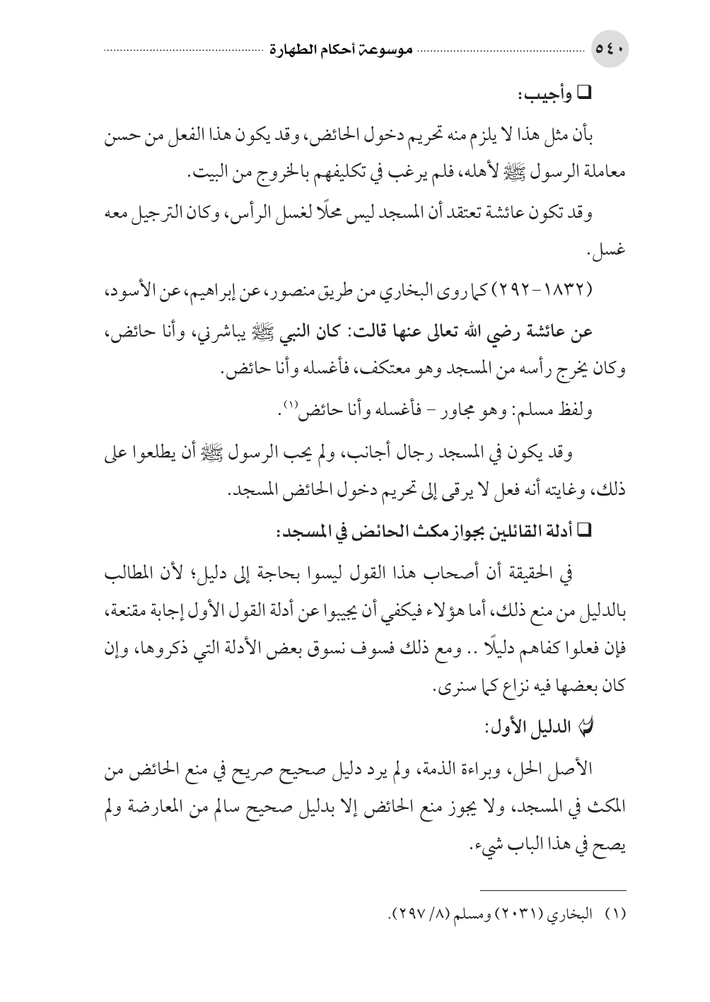 • أدلة القائلين بجواز مكث الحائض في المسجد: