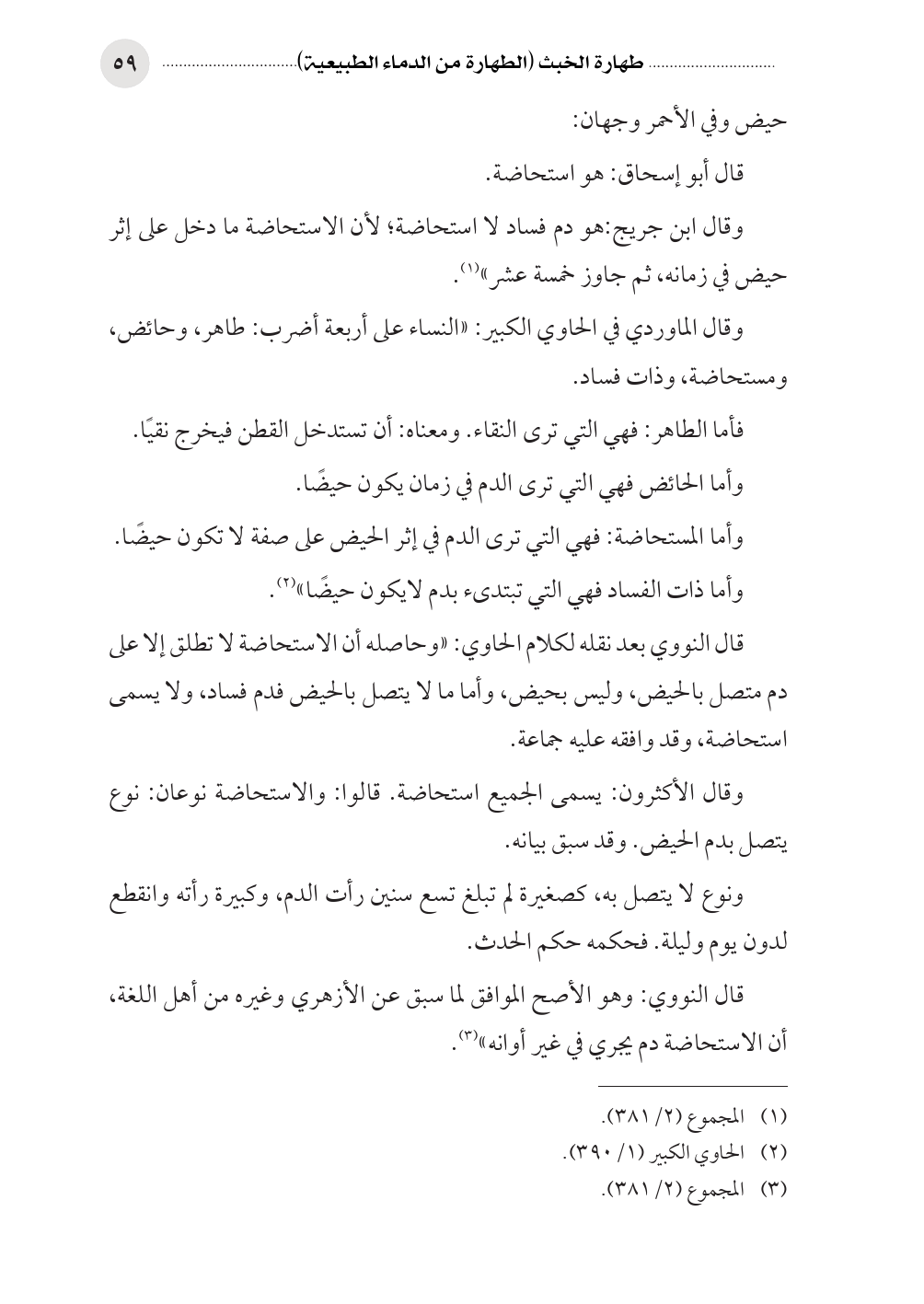 قال النووي: وهو الأصح الموافق لما سبق عن الأزهري وغيره من أهل اللغة، أن الاستحاضة دم يجري في غير أوانه» (¬٣).