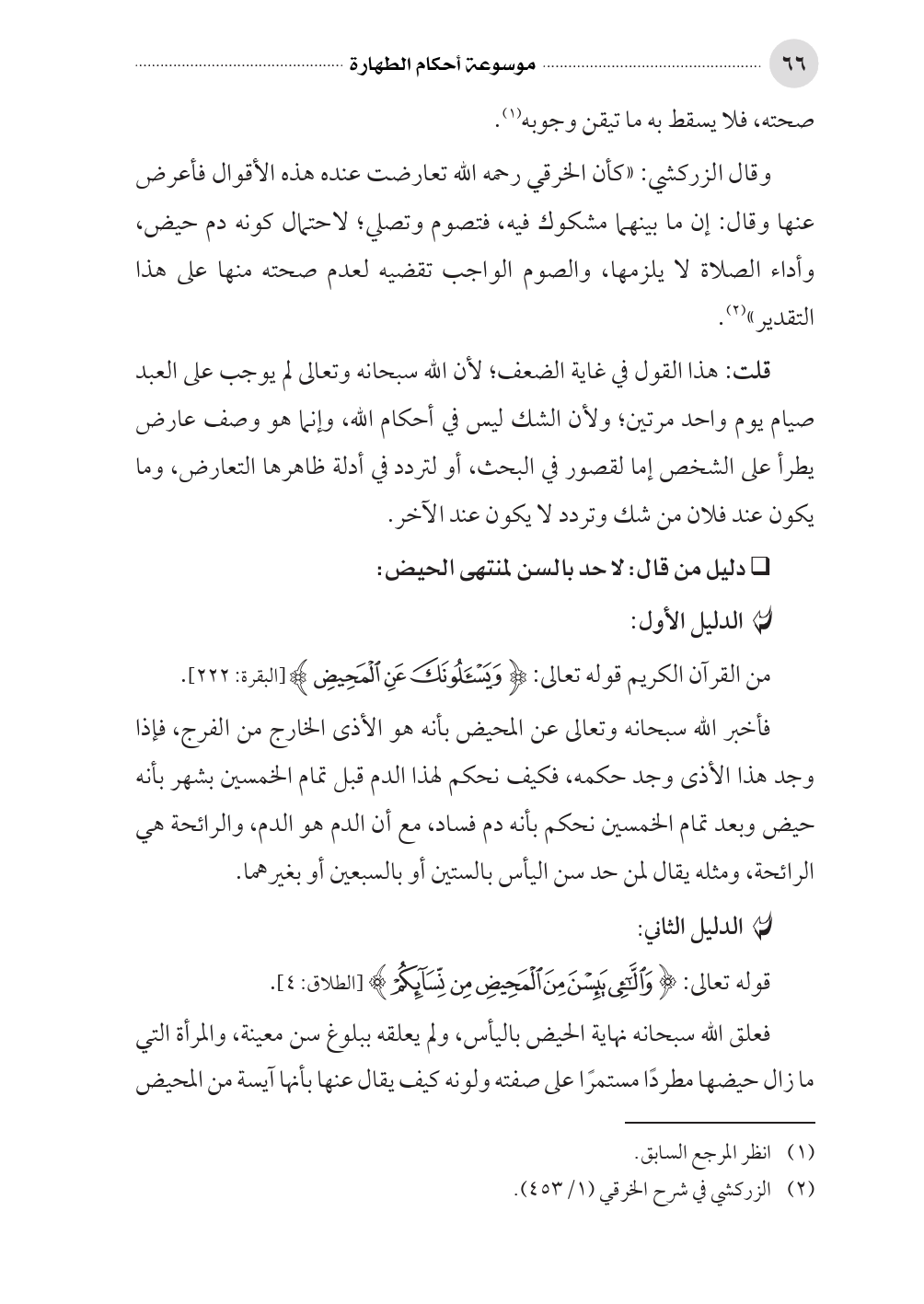 دليل من قال: لا حد بالسن لمنتهى الحيض: