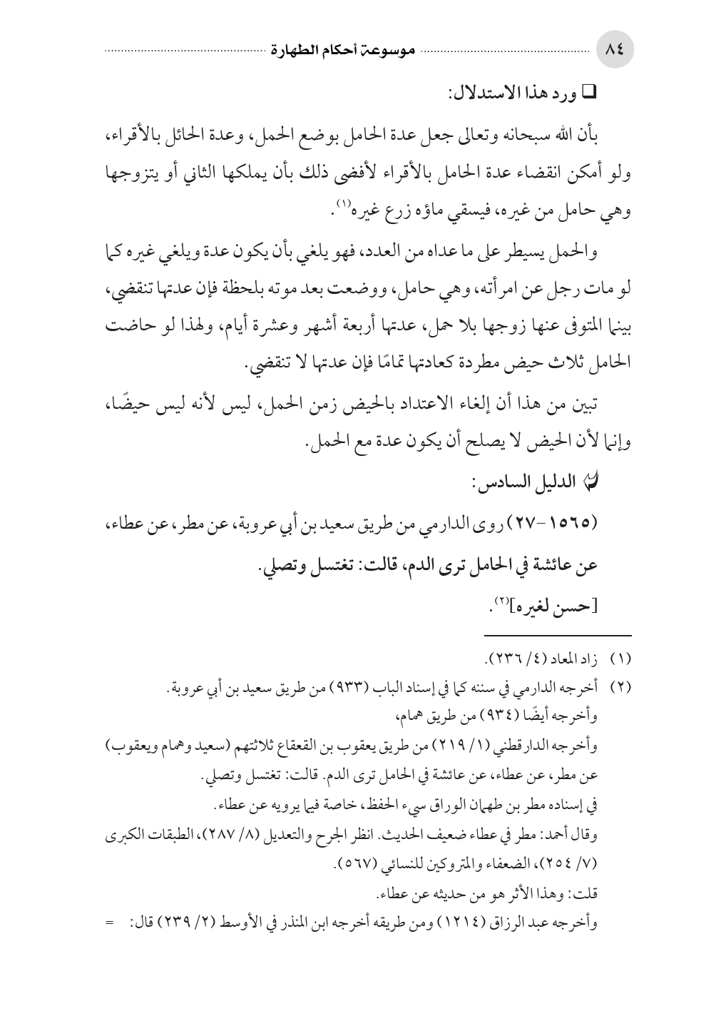 وهذا كالصريح من أحمد رحمه الله بأن دم الحامل دم حيض، وسوف نأتي على أثر أم علقمة عن عائشة في أدلة القول الثاني.