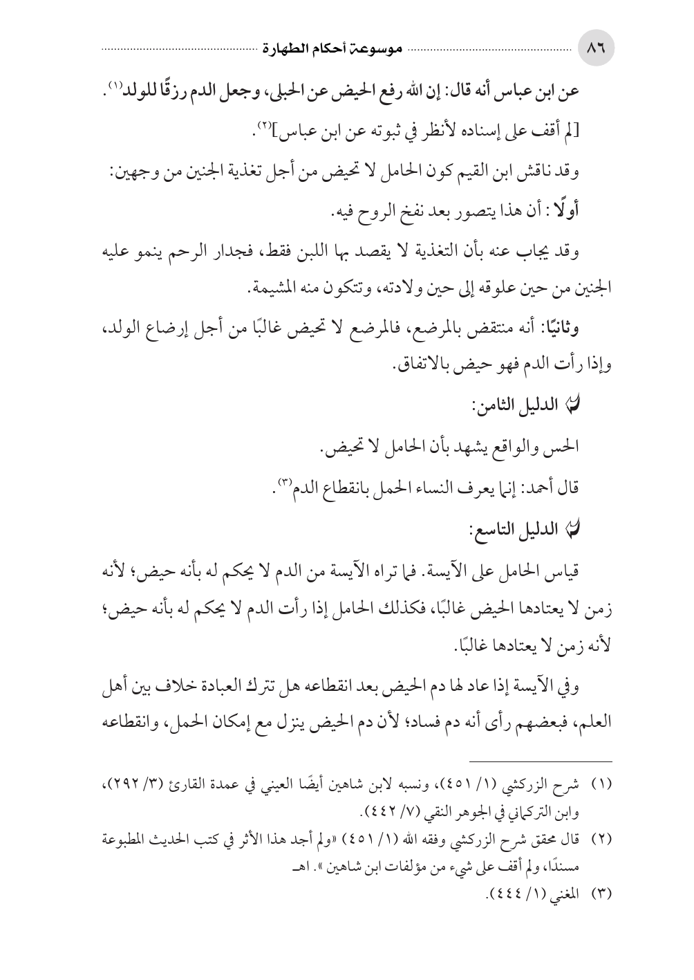 وقد ناقش ابن القيم كون الحامل لا تحيض من أجل تغذية الجنين من وجهين: