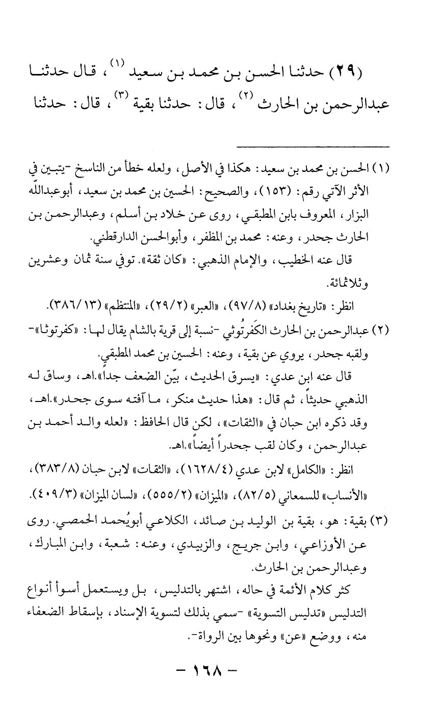 29 - حدثنا الحسن بن محمد بن سعيد قال: حدثنا عبد الرحمن بن الحارث قال: حدثنا بقية قال: حدثنا -[169]--[170]- الزبيدي عن الزهري عن عمرو بن عثمان بن أبان عن جابر بن عبدالله أن رسول الله صلى الله عليه وسلم قال أري الليلة رجل صالح أن أبا بكر نيط برسول الله صلى الله عليه وسلم ونيط عمر بأبي بكر ونيط عثمان بعمر قال جابر فلما قمنا من عند رسول الله صلى الله عليه وسلم قلنا أما الرجل الصالح فرسول الله صلى الله عليه وسلم وأما ما ذكر من نوط بعضهم ببعض فهم ولاة هذا الأمر الذي -[171]- بعث الله به نبيه صلى الله عليه وسلم
