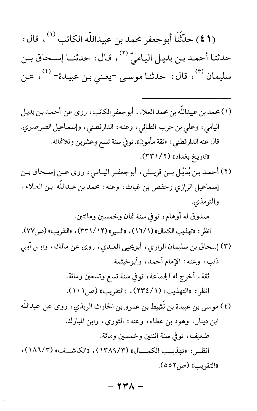 41 - حدثنا أبو جعفر محمد بن عبيدالله الكاتب قال: حدثنا أحمد بن بديل اليامي قال: حدثنا إسحاق بن سليمان قال: حدثنا موسى يعني ابن عبيدة عن -[239]- هود بن عطاء عن أنس قال كان في عهد رسول الله صلى الله عليه وسلم رجل متعبد يعجبنا تعجبه واجتهاده فذكرناه لرسول الله باسمه فلم يعرفه ووصفناه بصفته فلم يعرفه فبينا نحن نذكره إذ طلع علينا فقلنا يا رسول الله هو ذا هو فقال إنكم لتحدثون عن رجل أرى على وجهه سفعة الشيطان -[240]- فأقبل حتى وقف علينا فقال له رسول الله صلى الله عليه وسلم أنشدك هل قلت حين وقفت علينا ما في المجلس أحد خير مني أو أفضل مني قال اللهم نعم فدخل المسجد يصلي فقال رسول الله صلى الله عليه وسلم من يقتل الرجل فقال أبو بكر أنا فدخل فوجده يصلي فقال سبحان الله أقتل رجلا وهو يصلي وقد نهانا رسول الله صلى الله عليه وسلم عن ضرب المصلين فقال رسول الله صلى الله عليه وسلم من يقتل الرجل فقال عمر أنا فدخل فوجده ساجدا فقال قد رجع من هو خير مني وأفضل أبو بكر أقتل رجلا وهو واضع جبهته لله عز وجل فخرج فقال له رسول الله صلى الله عليه وسلم مه قال يا رسول الله بأبي وأمي وجدته ساجدا فكرهت قتله فقال رسول الله صلى الله عليه وسلم من يقتل الرجل فقال علي أنا فقال أنت إن أدركته قتلته فوجده قد خرج فأتى النبي صلى الله عليه وسلم فقال له مه فقال وجدته قد خرج فقال رسول الله صلى الله عليه وسلم لو قتل ما اختلف من أمتي اثنان لكان أولهم وآخرهم سواء