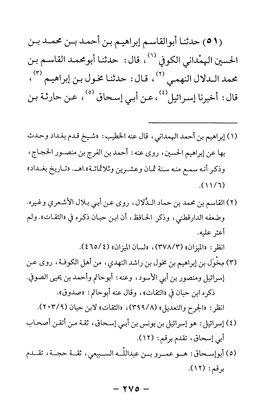 51 - حدثنا أبو القاسم إبراهيم بن أحمد بن محمد بن الحسين الهمداني الكوفي قال: حدثنا أبو محمد القاسم بن محمد الدلال النهمي قال: حدثنا مخول بن إبراهيم قال: أخبرنا إسرائيل عن أبي إسحاق عن حارثة بن -[276]- مضرب عن علي قال بعثني رسول الله صلى الله عليه وسلم إلى اليمن فقلت يا رسول الله تبعثني إلى قوم أسن مني لأقضي بينهم فقال اذهب فإن الله سيهدي قلبك ويثبت لسانك