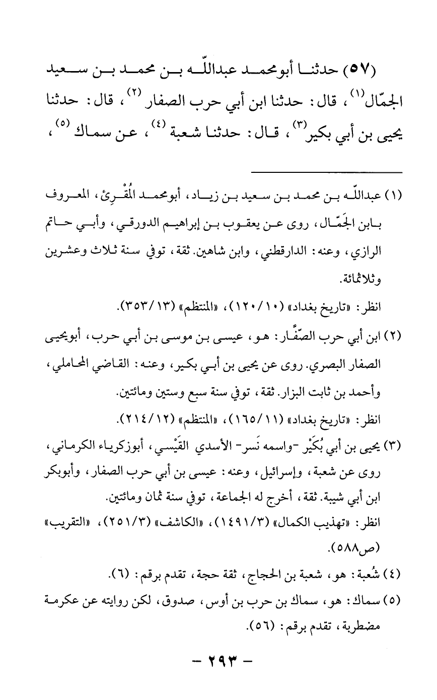 57 - حدثنا أبو محمد عبدالله بن محمد بن سعيد الجمال قال حدثنا ابن أبي حرب الصفار قال: حدثنا يحيى بن أبي بكير قال: حدثنا شعبة عن سماك -[294]- عن عكرمة عن ابن عباس قال ما ثبت لنا شيء عن علي فتركناه أو فعدلنا عنه