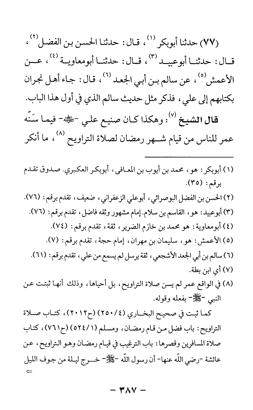 77 - حدثنا أبو بكر قال: حدثنا الحسن بن الفضل قال: حدثنا أبو عبيد قال: حدثنا أبو معاوية عن الأعمش عن سالم بن أبي الجعد قال جاء أهل نجران بكتابهم إلى علي فذكر مثل حديث سالم الذي في أول هذا الباب