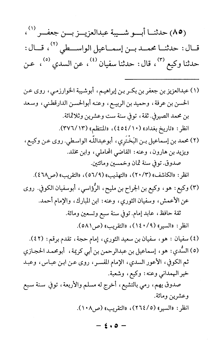 85 - حدثنا أبو شيبة عبد العزيز بن جعفر قال: حدثنا محمد بن إسماعيل الواسطي قال: حدثنا وكيع قال: حدثنا سفيان عن السدي عن -[406]- عبد خير عن علي قال: سمعته يقول رحم الله أبا بكر هو أول من جمع القرآن بين اللوحين
