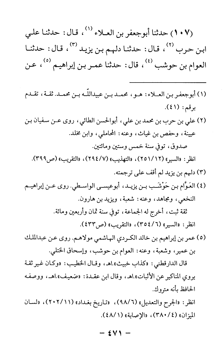107 - حدثنا أبو جعفر بن العلاء قال: حدثنا علي بن حرب قال: حدثنا دلهم بن يزيد قال: حدثنا العوام بن حوشب قال: حدثنا عمر بن إبراهيم عن -[472]- عبد الملك بن عمير عن أسيد بن صفوان وكانت له صحبة قال قال علي بن أبي طالب رضي الله عنه والذي جاء بالصدق محمد صلى الله عليه وسلم وصدق به أبو بكر الصديق