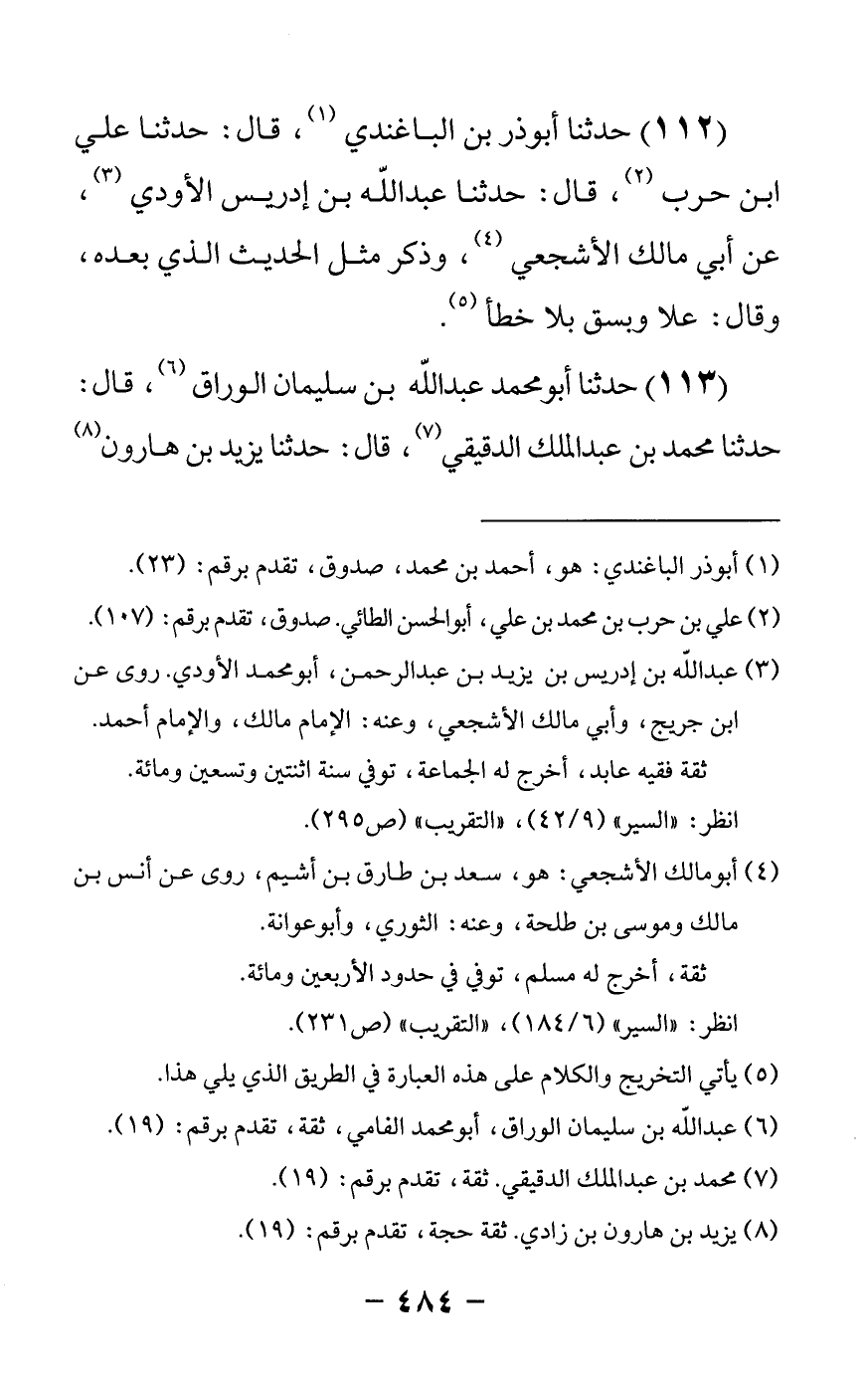 112 - حدثنا أبو ذر بن الباغندي قال: حدثنا علي بن حرب قال: حدثنا عبدالله بن إدريس الأودي عن أبي مالك الأشجعي وذكر مثل الحديث الذي بعده وقال علا وبسق بلا خطأ
