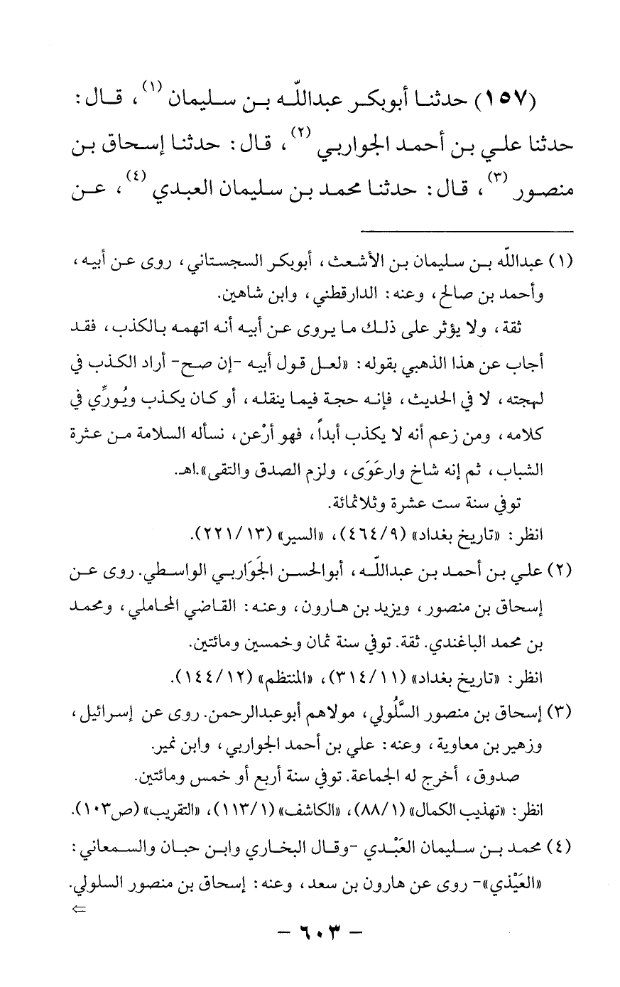 157 - حدثنا أبو بكر عبدالله بن سليمان قال: حدثنا علي بن أحمد الجواربي قال: حدثنا إسحاق بن منصور قال: حدثنا محمد بن سليمان العبدي عن -[604]- هارون بن سعد عن عمران بن ظبيان عن أبي تحيى قال: سمعت عليا عليه السلام يحلف لأنزل الله اسم أبي -[605]- بكر من السماء الصديق رحمة الله عليه