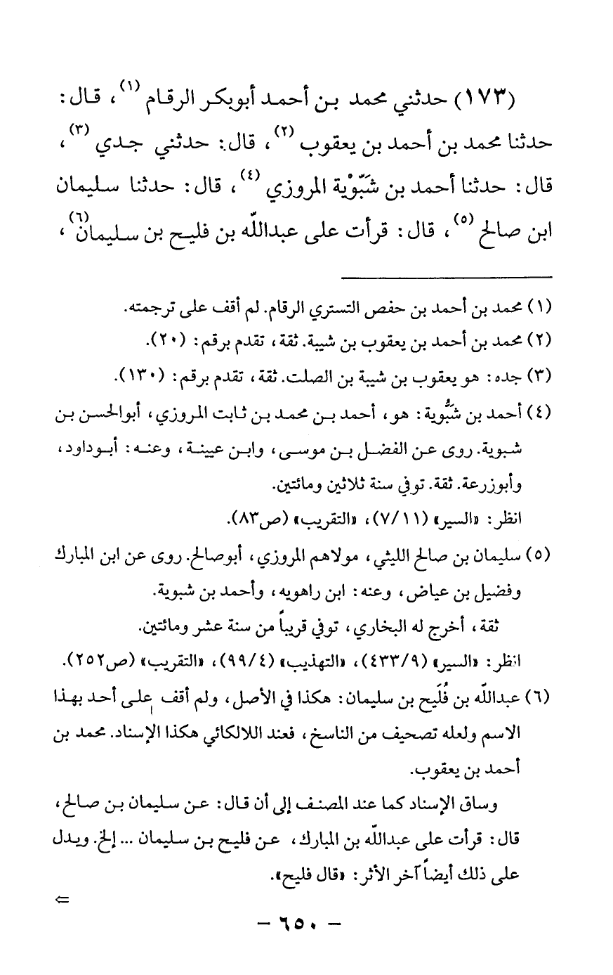 173 - حدثني محمد بن أحمد أبو بكر الرقام قال: حدثنا محمد بن أحمد بن يعقوب قال: حدثني جدي قال: حدثنا أحمد بن شبوية المروزي قال: حدثنا سليمان بن صالح قال قرأت على عبدالله بن فليح بن سليمان -[651]- عن عمر بن عبدالله بن عروة بن الزبير عن أبيه قال كان مال أبي بكر قد بلغ الغاية ألف أوقية فضة لم يزد -[652]- عليها مال قرشي قط ثم أنفق ذلك كله في الله عز وجل