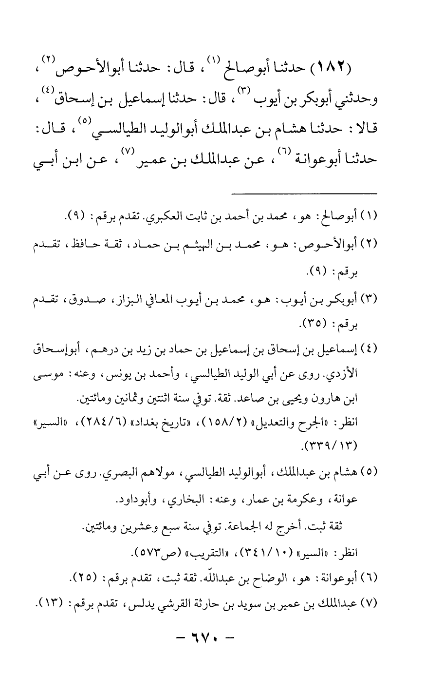 182 - حدثنا أبو صالح قال: حدثنا أبو الأحوص وحدثني أبو بكر بن أيوب قال: حدثنا إسماعيل بن إسحاق قالا حدثنا هشام بن عبد الملك أبو الوليد الطيالسي قال: حدثنا أبو عوانة عن عبد الملك بن عمير عن ابن أبي -[671]- المعلى عن أبيه عن رسول الله صلى الله عليه وسلم قال ما أحد من الناس أمن علي في صحبته وذات يده من ابن أبي قحافة ولو كنت متخذا خليلا من أمتي لاتخذت ابن أبي قحافة ولكن ود وأخا إيمان يقولها مرتين وإن صاحبكم خليل الله