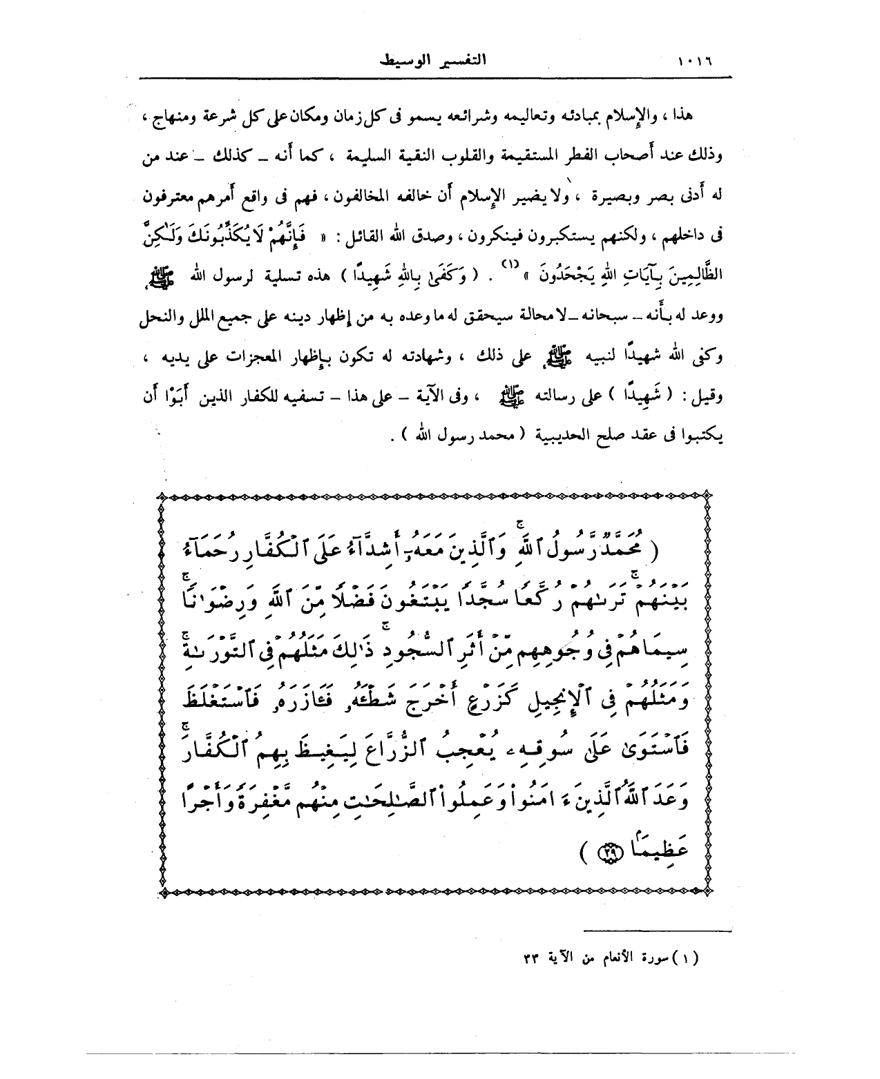 (مُحَمَّدٌ رَسُولُ اللهِ وَالَّذِينَ مَعَهُ أَشِدَّاءُ عَلَى الْكُفَّارِ رُحَمَاءُ بَيْنَهُمْ تَرَاهُمْ رُكَّعًا سُجَّدًا يَبْتَغُونَ فَضْلًا مِنَ اللهِ وَرِضْوَانًا سِيمَاهُمْ في وُجُوهِهِمْ مِنْ أَثَرِ السُّجُودِ ذَلِكَ مَثَلُهُمْ في التَّوْرَاةِ وَمَثَلُهُمْ في الْإِنْجِيلِ كَزَرْعٍ أَخْرَجَ شَطْأَهُ فَآزَرَهُ فَاسْتَغْلَظَ فَاسْتَوَى عَلَى سُوقِهِ يُعْجِبُ الزُّرَّاعَ لِيَغِيظَ بِهِمُ الْكُفَّارَ وَعَدَ اللهُ الَّذِينَ آمَنُوا وَعَمِلُوا الصَّالِحَاتِ مِنْهُمْ مَغْفِرَةً وَأَجْرًا عَظِيمًا (29))