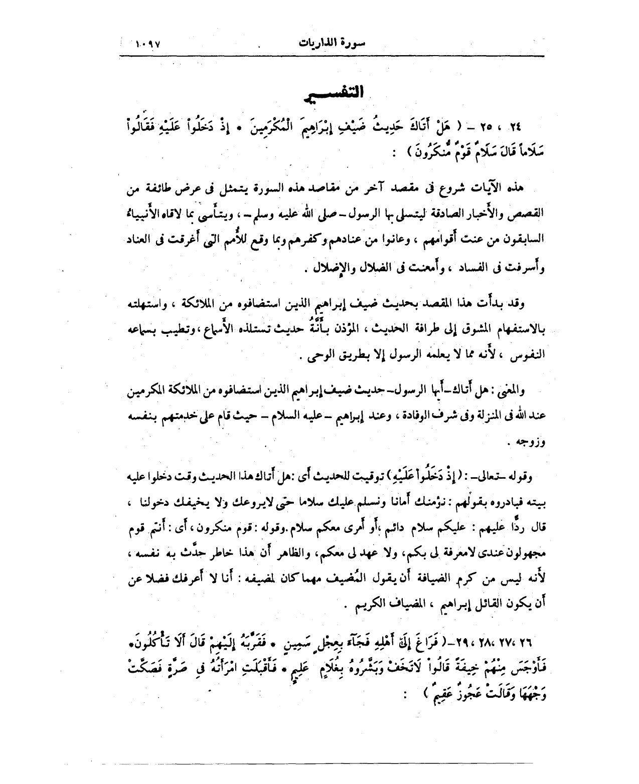 24، 25 - (هَلْ أَتَاكَ حَدِيثُ ضَيْفِ إِبْرَاهِيمَ الْمُكْرَمِينَ (24) إِذْ دَخَلُوا عَلَيْهِ فَقَالُوا سَلَامًا قَالَ سَلَامٌ قَوْمٌ مُنْكَرُونَ):