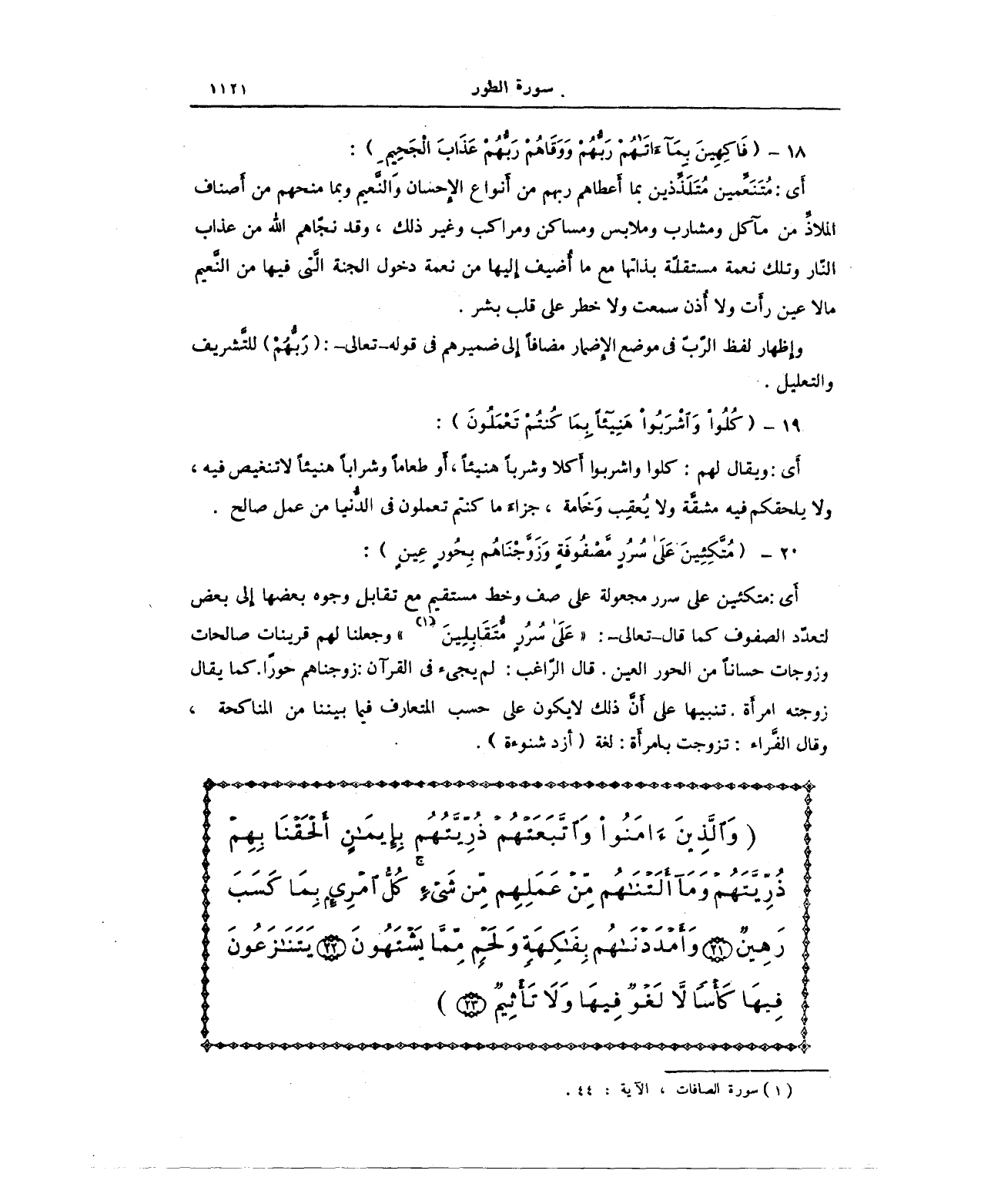 20 - {مُتَّكِئِينَ عَلَى سُرُرٍ مَصْفُوفَةٍ وَزَوَّجْنَاهُمْ بِحُورٍ عِينٍ}: