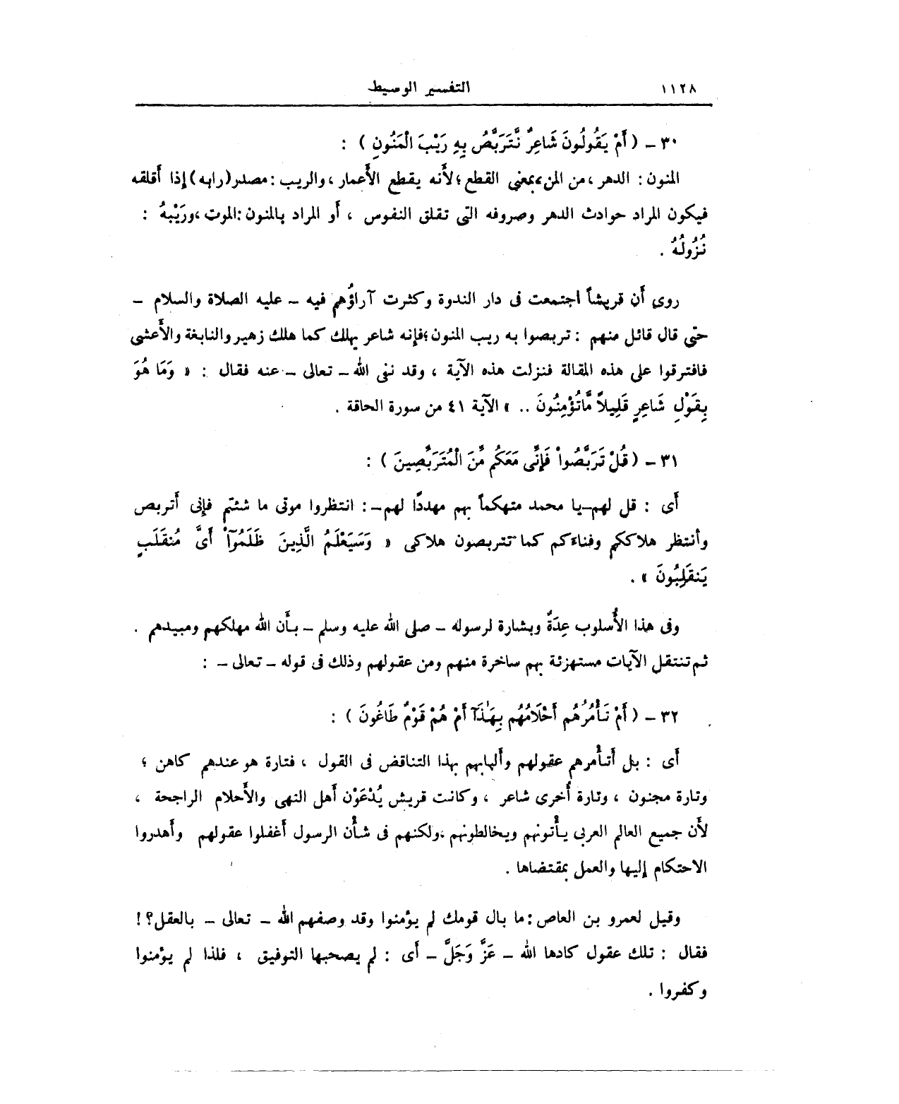 30 - {أَمْ يَقُولُونَ شَاعِرٌ نَتَرَبَّصُ بِهِ رَيْبَ الْمَنُونِ}: