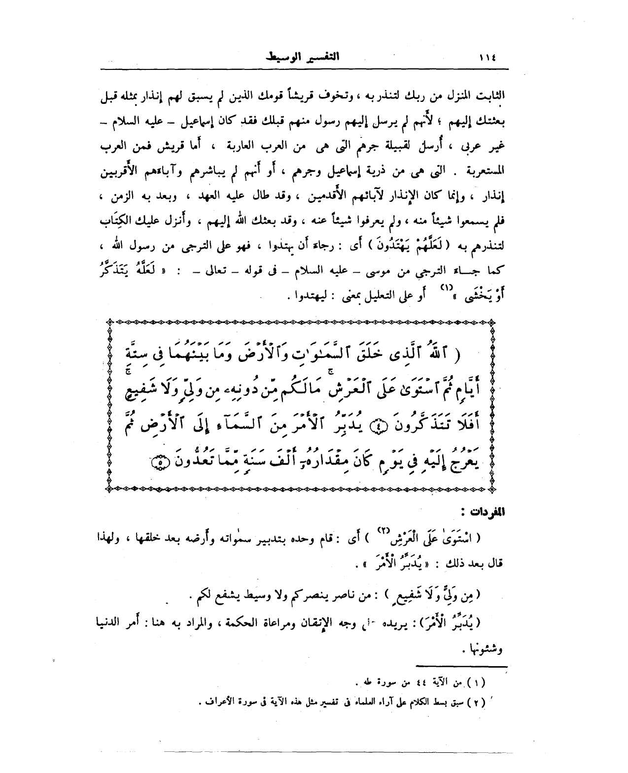 {اللَّهُ الَّذِي خَلَقَ السَّمَاوَاتِ وَالْأَرْضَ وَمَا بَيْنَهُمَا فِي سِتَّةِ أَيَّامٍ ثُمَّ اسْتَوَى عَلَى الْعَرْشِ مَا لَكُمْ مِنْ دُونِهِ مِنْ وَلِيٍّ وَلَا شَفِيعٍ أَفَلَا تَتَذَكَّرُونَ (4) يُدَبِّرُ الْأَمْرَ مِنَ السَّمَاءِ إِلَى الْأَرْضِ ثُمَّ يَعْرُجُ إِلَيْهِ فِي يَوْمٍ كَانَ مِقْدَارُهُ أَلْفَ سَنَةٍ مِمَّا تَعُدُّونَ (5)}