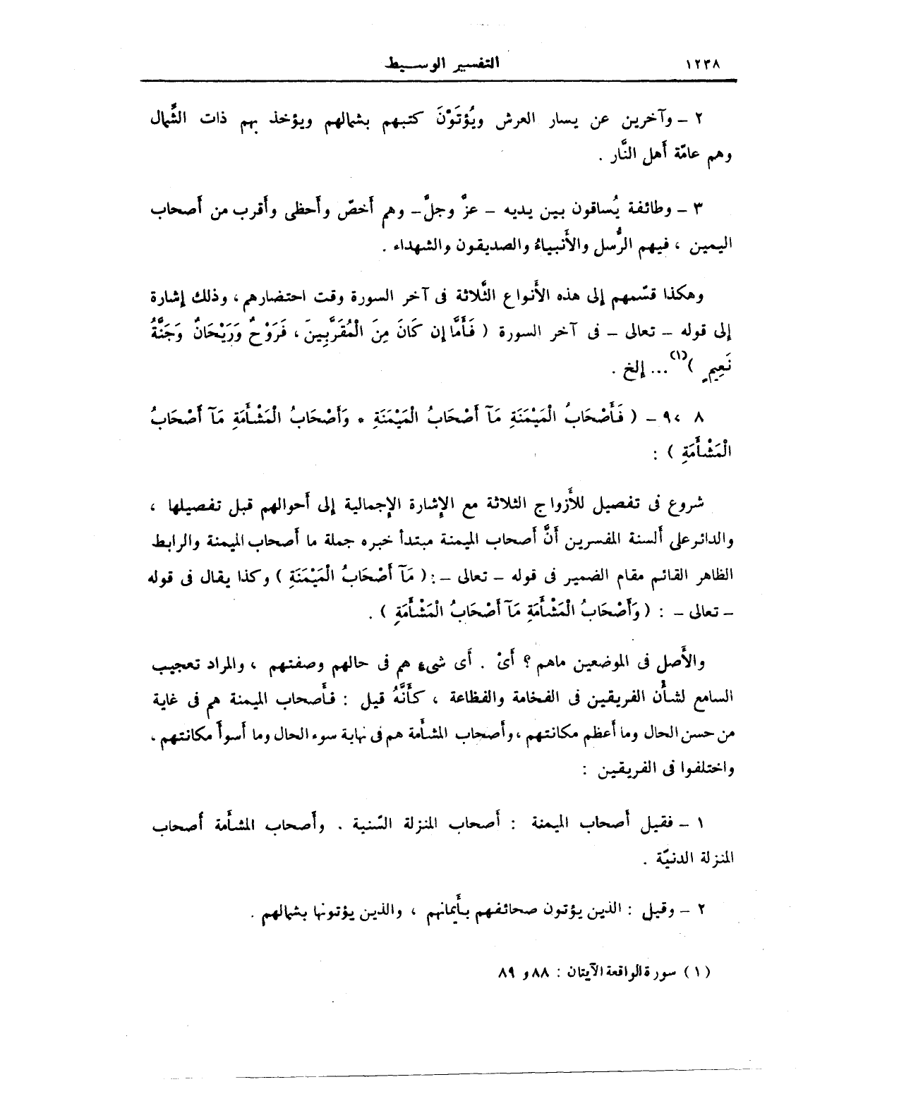 1 - فقيل أصحاب الميمنة: أصحاب المنزلة السّنية. أصحاب المشأمة أصحاب المنزلة الدنية.