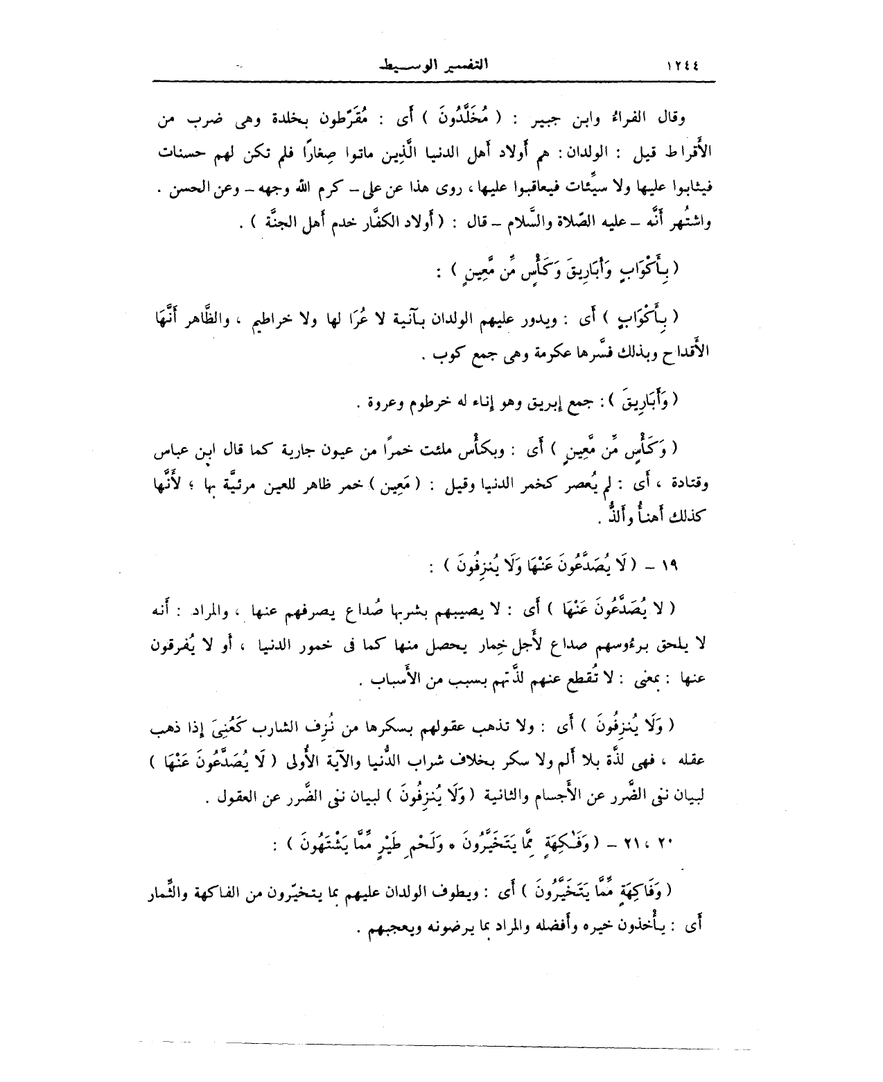 19 - {لَا يُصَدَّعُونَ عَنْهَا وَلَا يُنْزِفُونَ}: