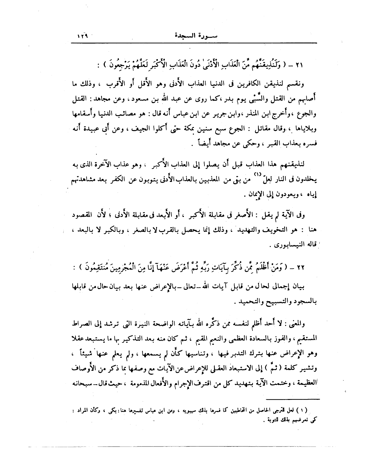 21 - {وَلَنُذِيقَنَّهُمْ مِنَ الْعَذَابِ الْأَدْنَى دُونَ الْعَذَابِ الْأَكْبَرِ لَعَلَّهُمْ يَرْجِعُونَ}: