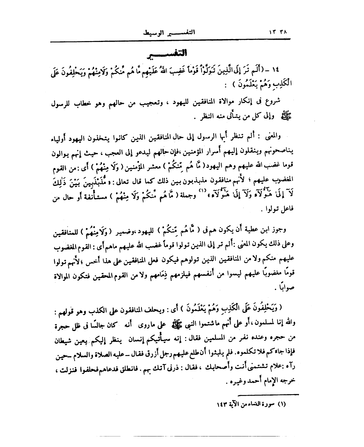 14 - {أَلَمْ تَرَ إِلَى الَّذِينَ تَوَلَّوْا قَوْمًا غَضِبَ اللَّهُ عَلَيْهِمْ مَا هُمْ مِنْكُمْ وَلَا مِنْهُمْ وَيَحْلِفُونَ عَلَى الْكَذِبِ وَهُمْ يَعْلَمُونَ (14)}: