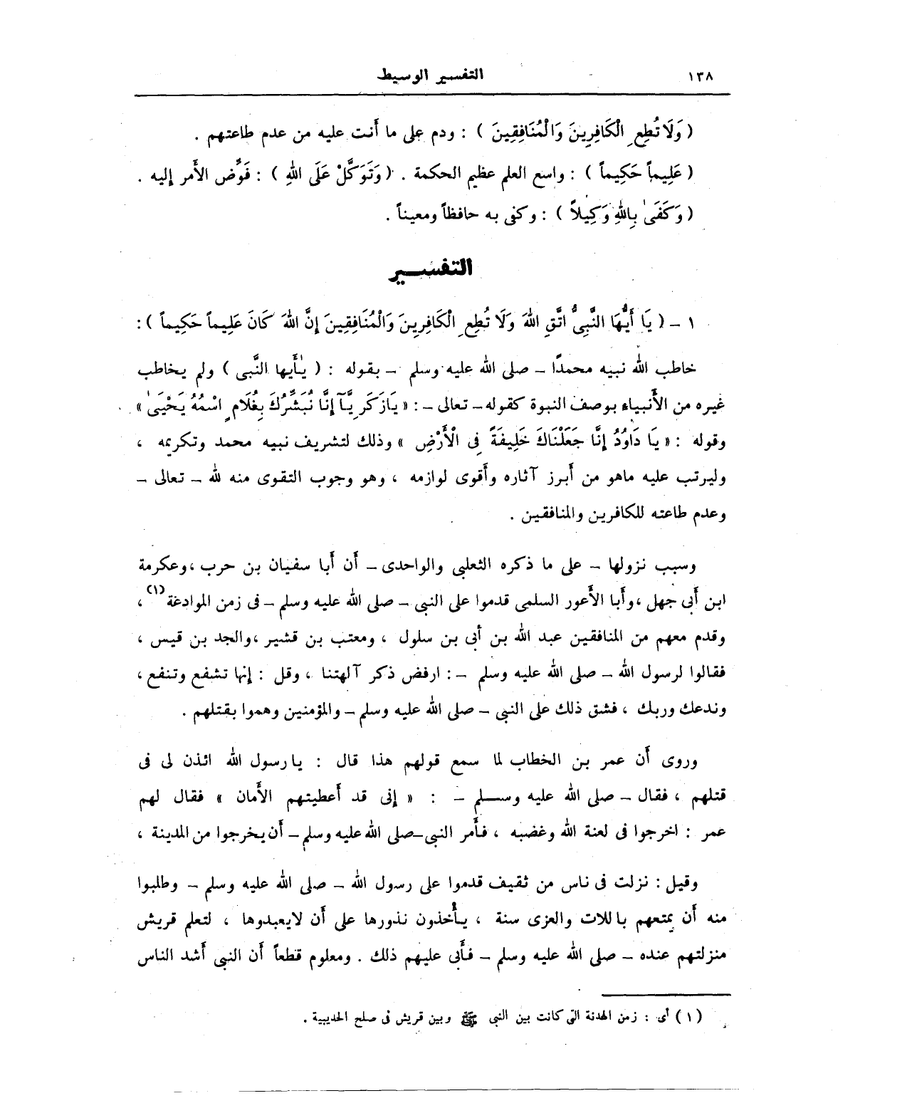 1 - {يَا أَيُّهَا النَّبِيُّ اتَّقِ اللَّهَ وَلَا تُطِعِ الْكَافِرِينَ وَالْمُنَافِقِينَ إِنَّ اللَّهَ كَانَ عَلِيمًا حَكِيمًا}: