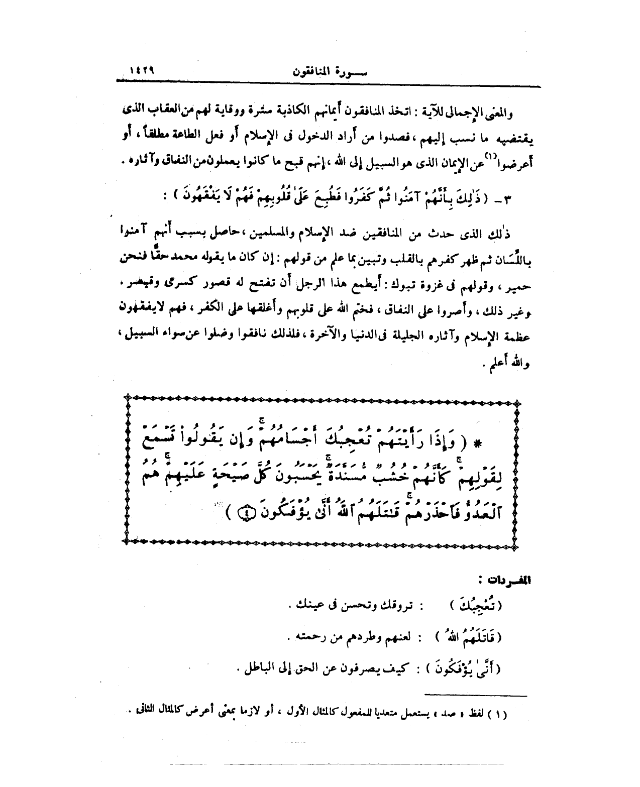 {وَإِذَا رَأَيْتَهُمْ تُعْجِبُكَ أَجْسَامُهُمْ وَإِنْ يَقُولُوا تَسْمَعْ لِقَوْلِهِمْ كَأَنَّهُمْ خُشُبٌ مُسَنَّدَةٌ يَحْسَبُونَ كُلَّ صَيْحَةٍ عَلَيْهِمْ هُمُ الْعَدُوُّ فَاحْذَرْهُمْ قَاتَلَهُمُ اللَّهُ أَنَّى يُؤْفَكُونَ (4)}