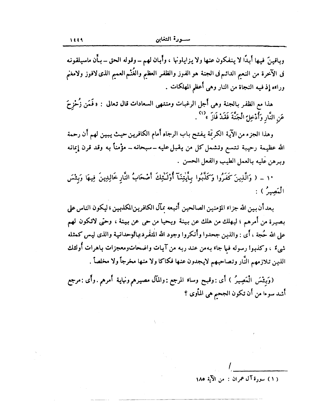 10 - {وَالَّذِينَ كَفَرُوا وَكَذَّبُوا بِآيَاتِنَا أُولَئِكَ أَصْحَابُ النَّارِ خَالِدِينَ فِيهَا وَبِئْسَ الْمَصِيرُ (10)}: