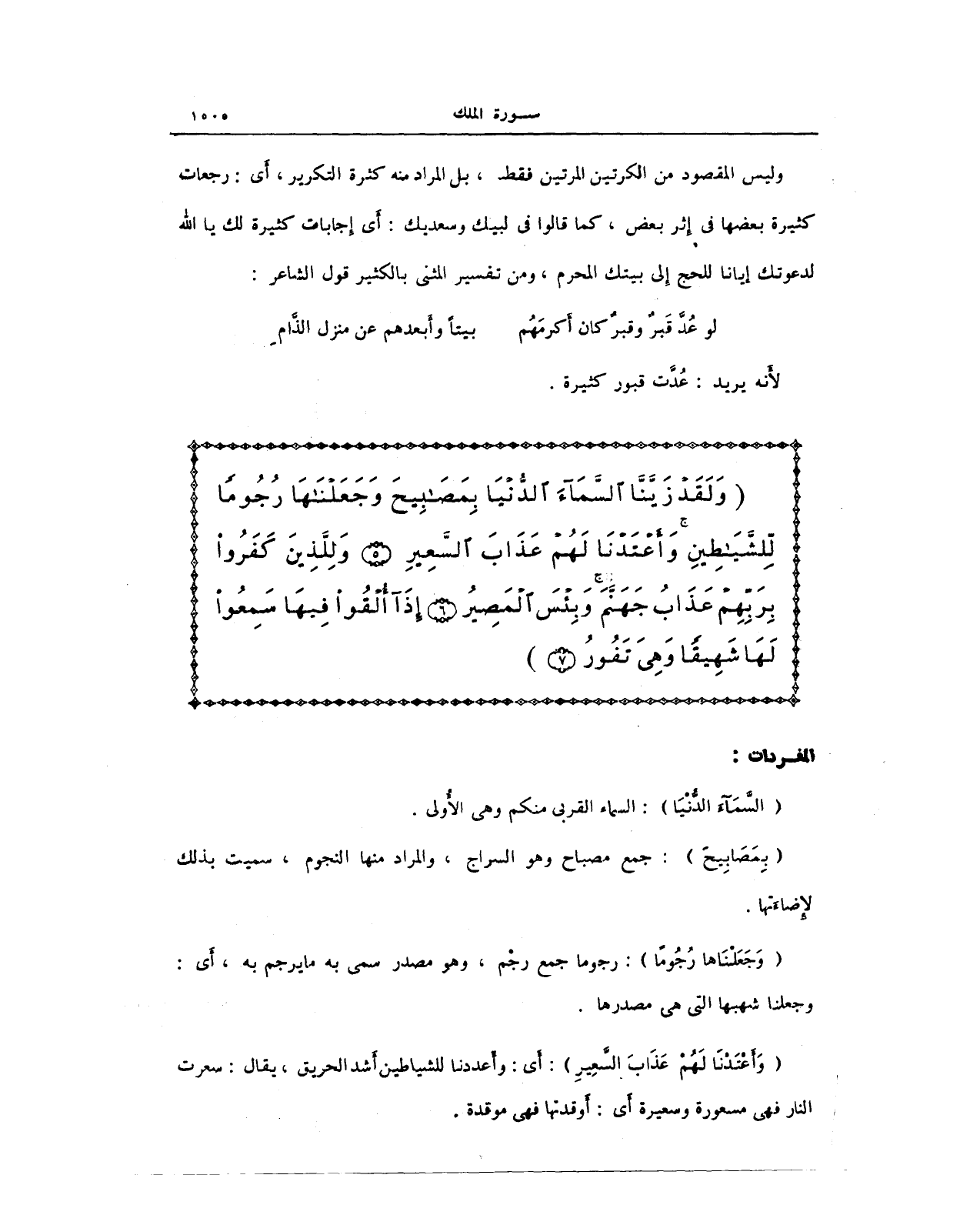 {وَلَقَدْ زَيَّنَّا السَّمَاءَ الدُّنْيَا بِمَصَابِيحَ وَجَعَلْنَاهَا رُجُومًا لِلشَّيَاطِينِ وَأَعْتَدْنَا لَهُمْ عَذَابَ السَّعِيرِ (5) وَلِلَّذِينَ كَفَرُوا بِرَبِّهِمْ عَذَابُ جَهَنَّمَ وَبِئْسَ الْمَصِيرُ (6) إِذَا أُلْقُوا فِيهَا سَمِعُوا لَهَا شَهِيقًا وَهِيَ تَفُورُ (7)}