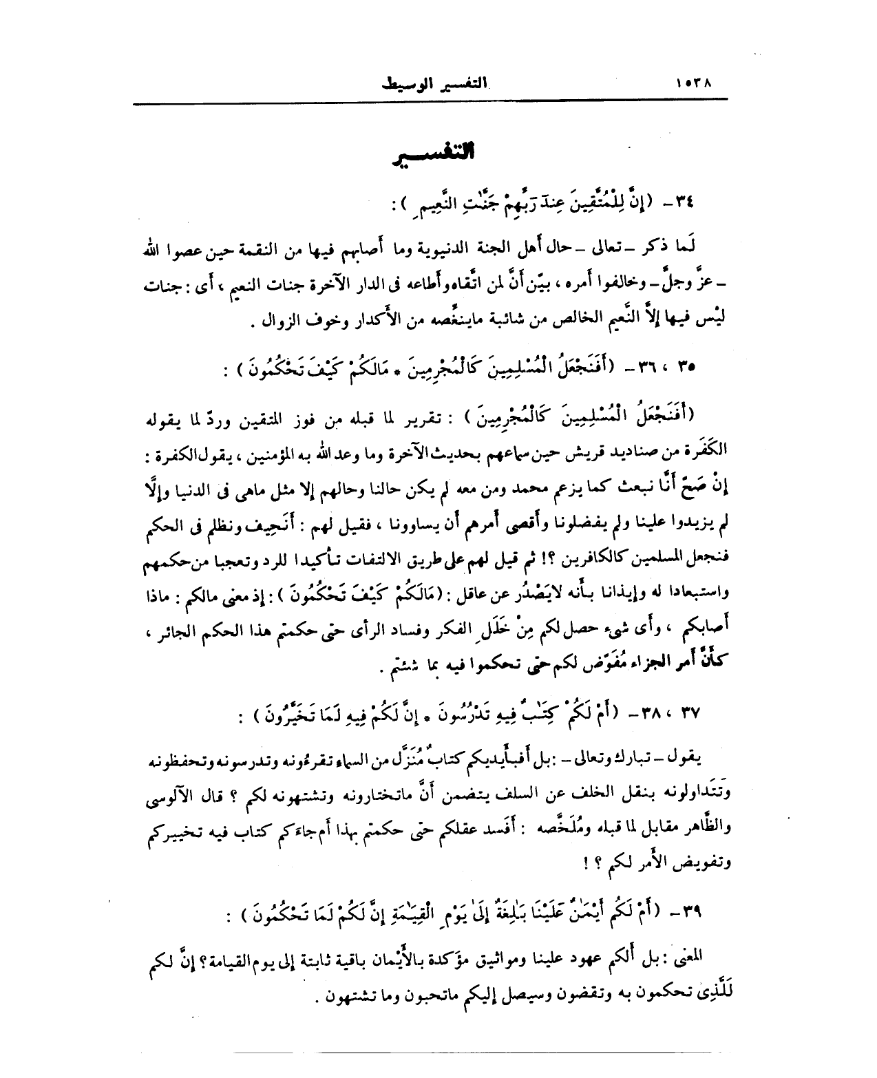 34 - {إِنَّ لِلْمُتَّقِينَ عِنْدَ رَبِّهِمْ جَنَّاتِ النَّعِيمِ (34)}: