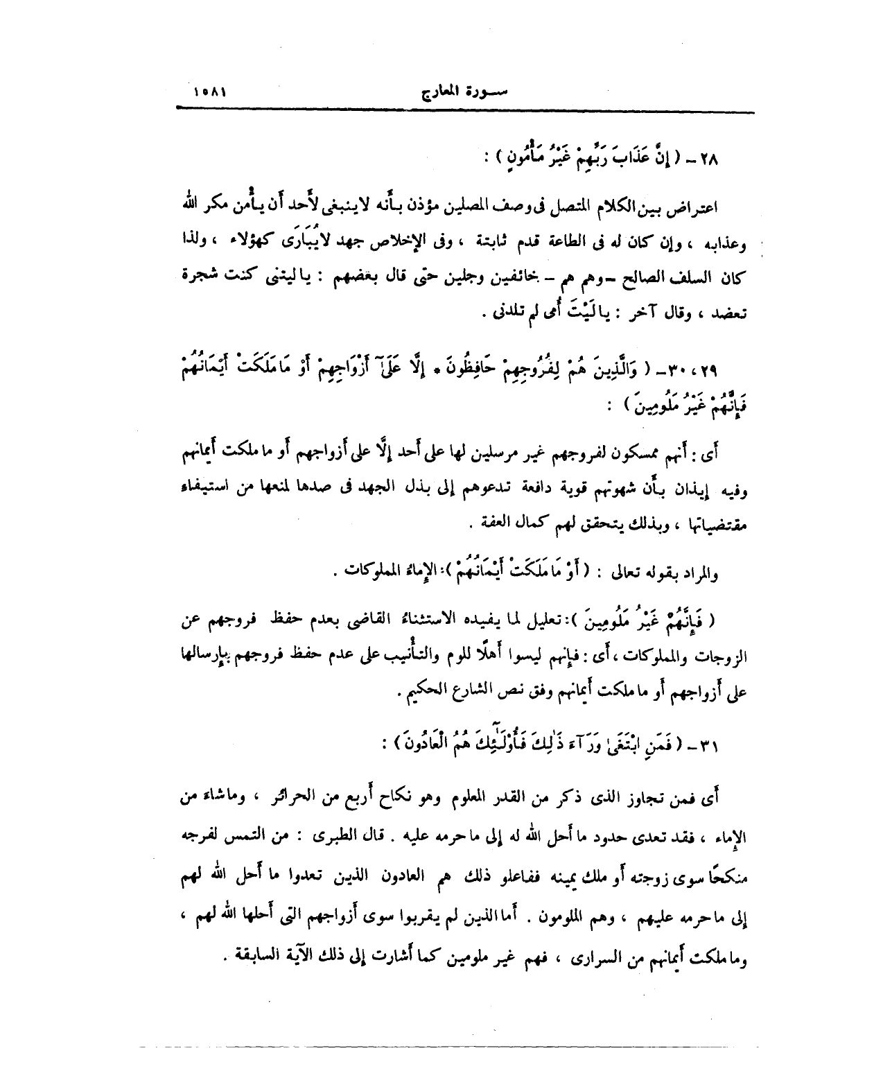30،29 - {وَالَّذِينَ هُمْ لِفُرُوجِهِمْ حَافِظُونَ (29) إِلَّا عَلَى أَزْوَاجِهِمْ أَوْ مَا مَلَكَتْ أَيْمَانُهُمْ فَإِنَّهُمْ غَيْرُ مَلُومِينَ (30)}: