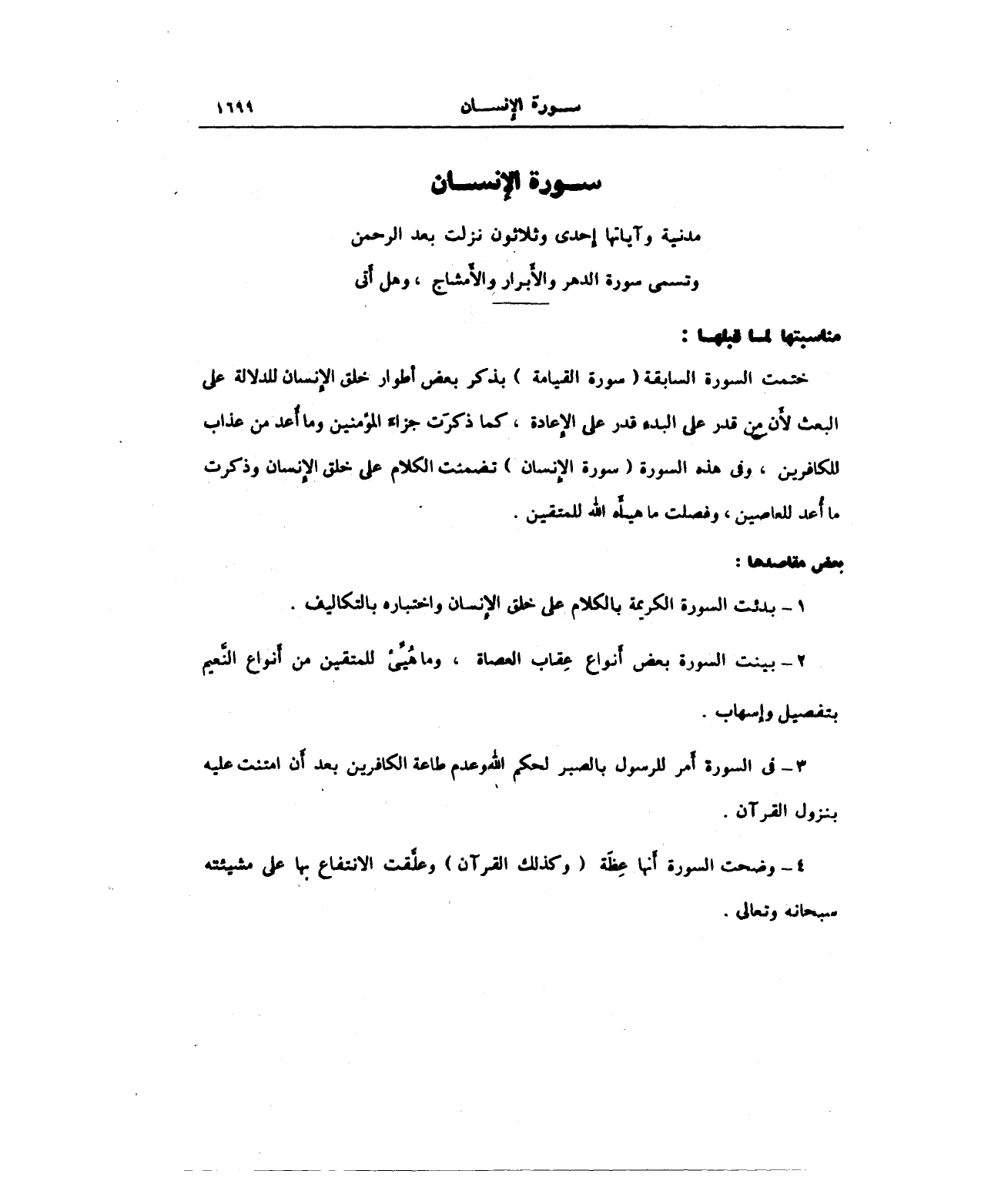 مدنية وآياتها إِحدى وثلاثون نزلت بعد الرحمن وتسمي سورة الدهر والأَبرار والأَمشاج، وهل أَتى