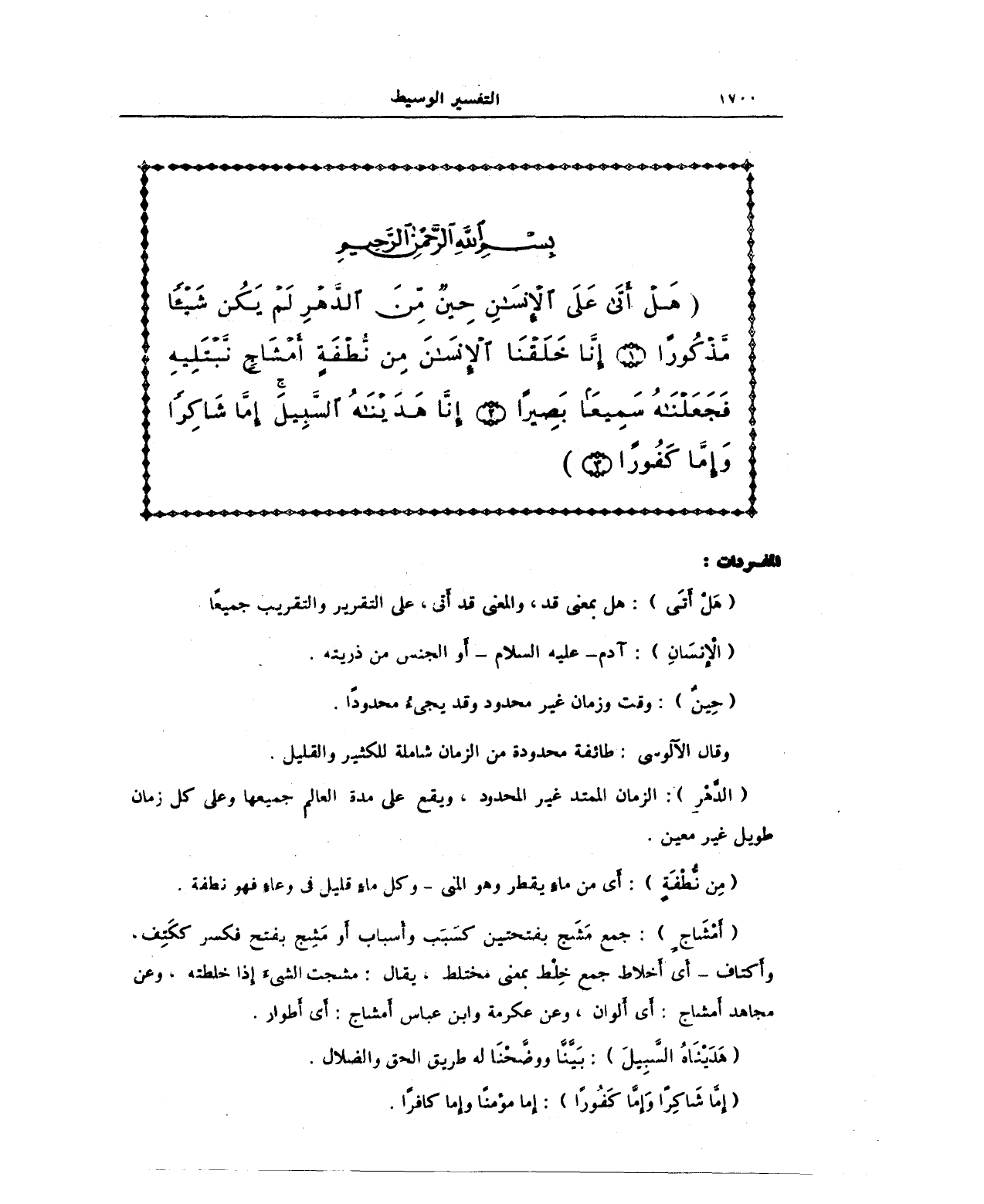(الإِنسَانِ): آدم - عليه السلام - أَو الجنس من ذريته.