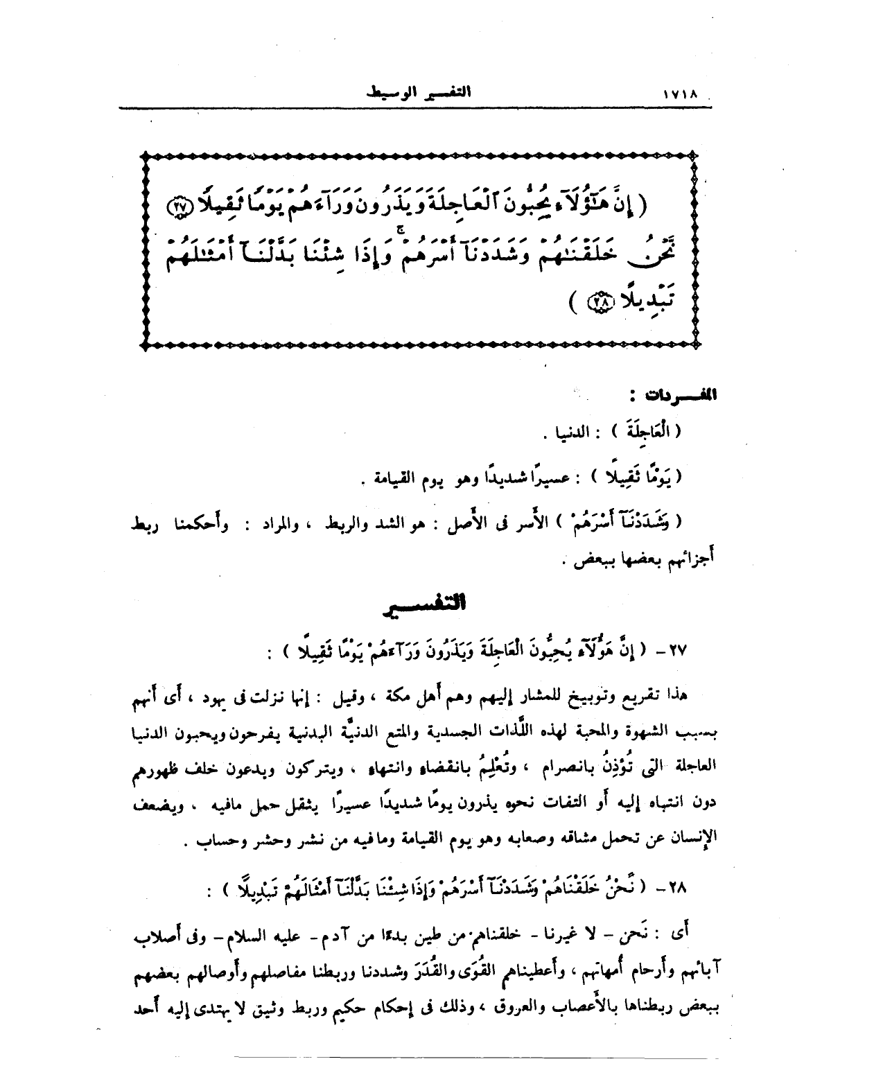 28 - (نَحْنُ خَلَقْنَاهُمْ وَشَدَدْنَا أَسْرَهُمْ وَإِذَا شِئْنَا بَدَّلْنَا أَمْثَالَهُمْ تَبْدِيلًا):