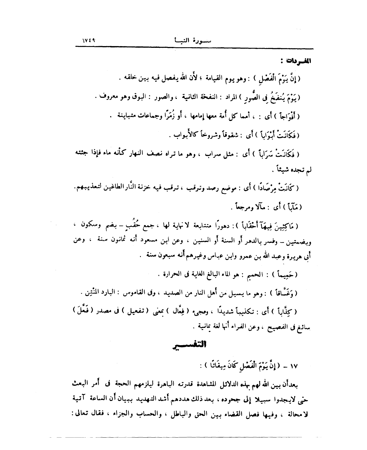 17 - (إِنَّ يَوْمَ الْفَصْلِ كَانَ مِيقَاتًا):