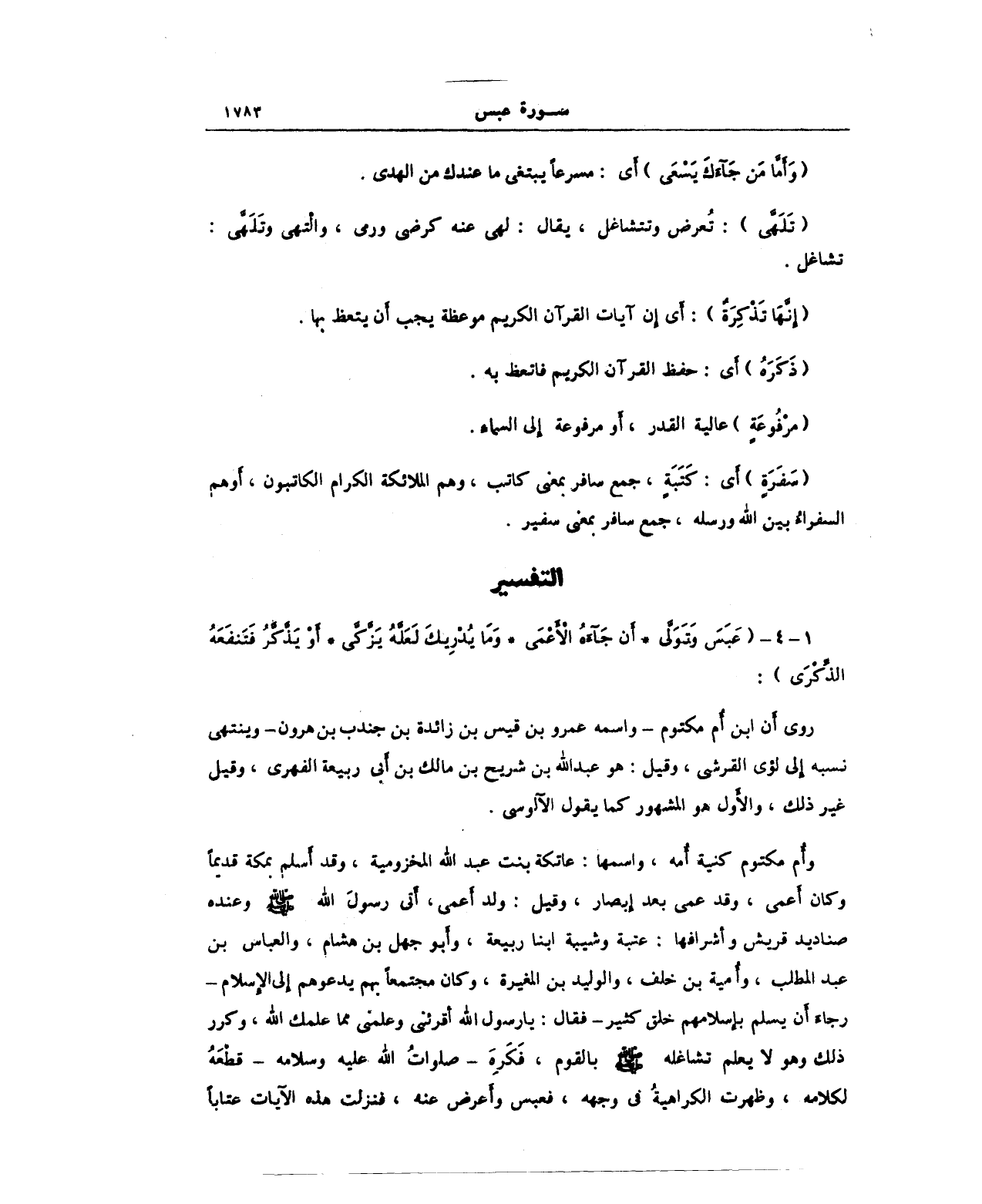 1 - 4 - (عَبَسَ وَتَوَلَّى * أَنْ جَاءَهُ الأَعْمَى * وَمَا يُدْرِيكَ لَعَلَّهُ يَزَّكَّى * أَوْ يَذَّكَّرُ فَتَنْفَعَهُ الذِّكْرَى):