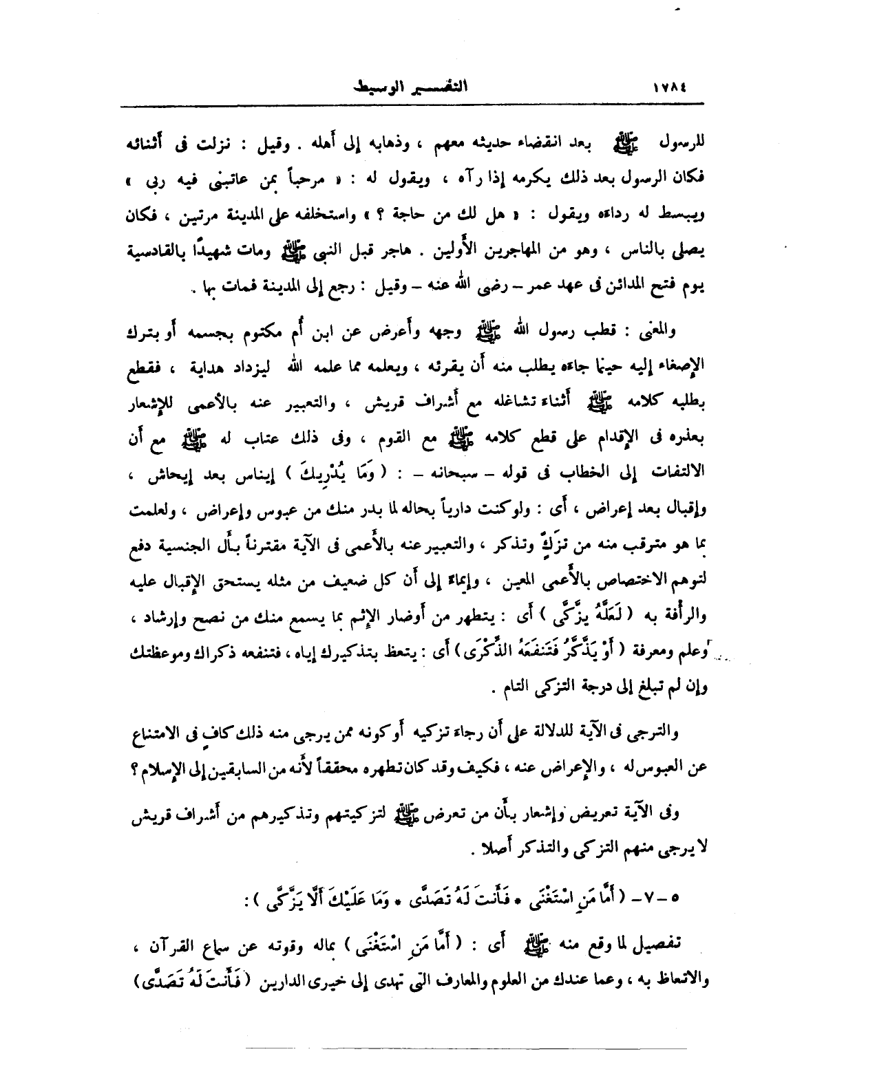 5 - 7 - (أَمَّا مَنْ اسْتَغْنَى (5) فَأَنْتَ لَهُ تَصَدَّى (6) وَمَا عَلَيْكَ أَلاَّ يَزَّكَّى):