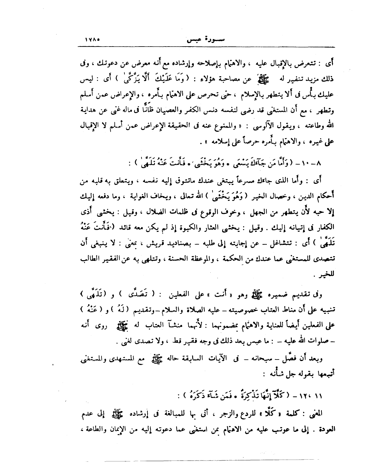 وبعد أن فصَّل -سبحانه- في الآيات السابقة حاله صلى الله عليه وسلم مع المستهدي والمستغني أتبعها بقوله جل شأنه.