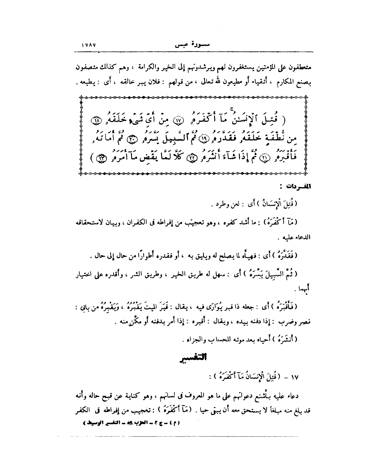 17 - (قُتِلَ الإِنْسَانُ مَا أَكْفَرَهُ):