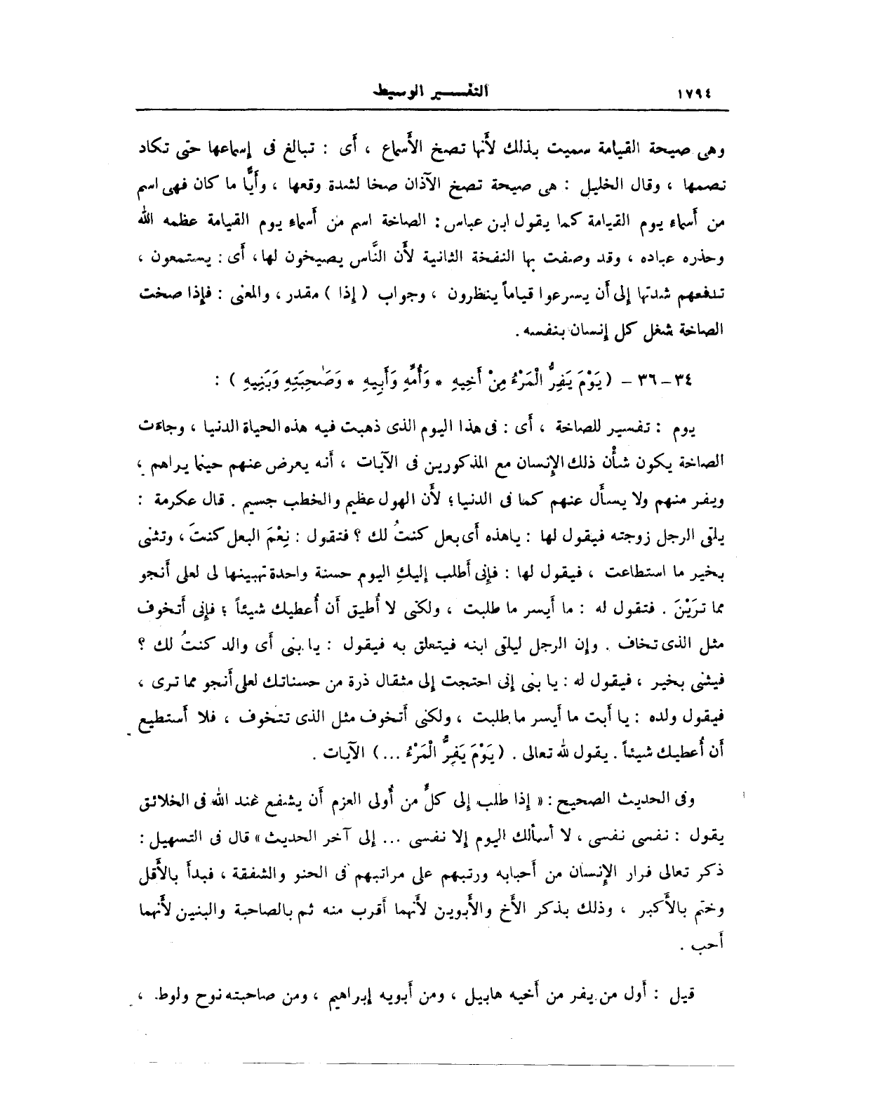 34 - 36 - (يَوْمَ يَفِرُّ الْمَرْءُ مِنْ أَخِيهِ * وَأُمِّهِ وَأَبِيهِ * وَصَاحِبَتِهِ وَبَنِيهِ):