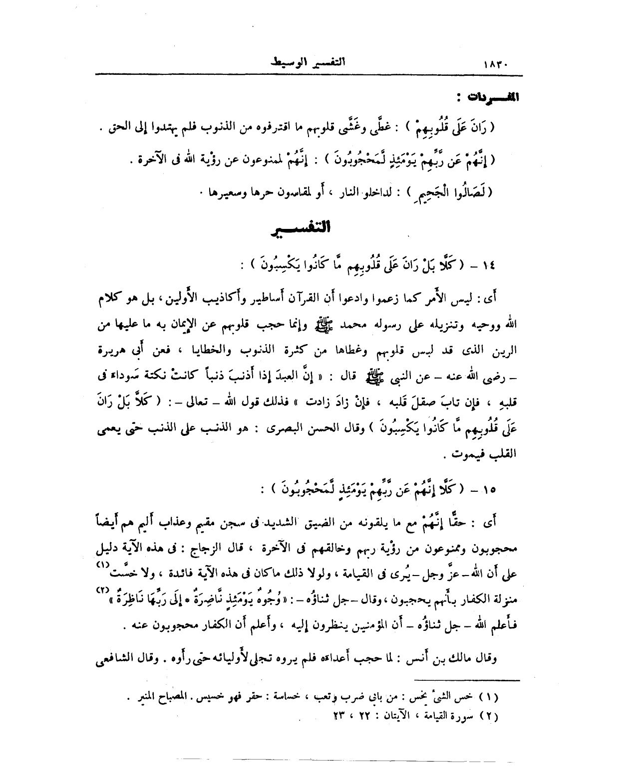 14 - (كَلاَّ بَلْ رَانَ عَلَى قُلُوبِهِمْ مَا كَانُوا يَكْسِبُونَ):