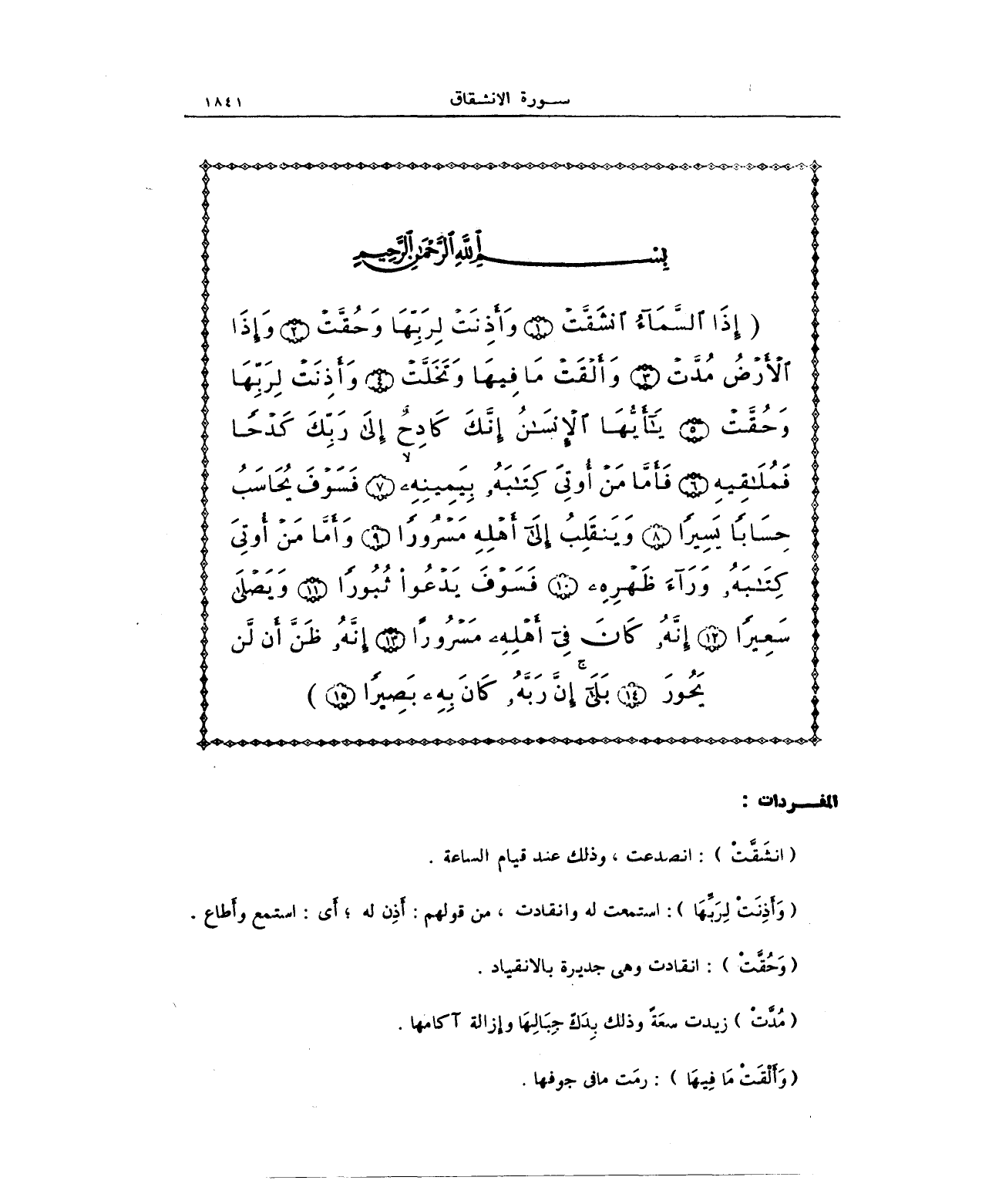 (انشَقَّتْ) انصدعت، وذلك عند قيام الساعة.