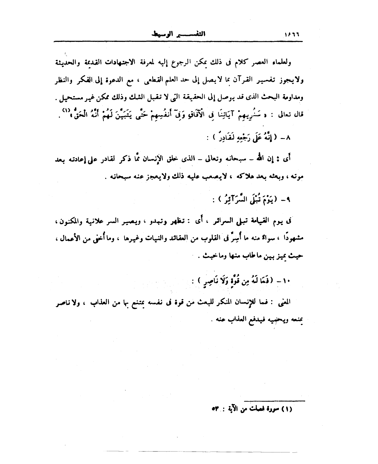 أَي: إِن الله - سبحانه وتعالى - الذي خلق الإِنسان ممَّا ذكر لقادر على إِعادته بعد موته، وبعثه بعد هلاكه، لا يصعب عليه ذلك ولا يعجز عنه سبحانه.