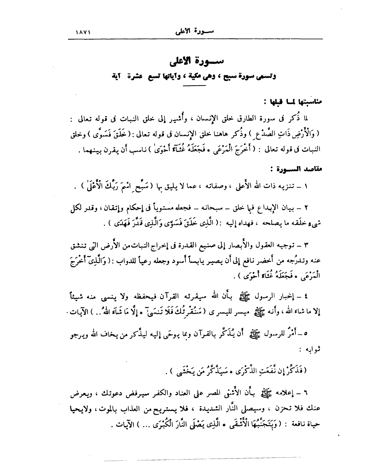 3 - توجيه العقول والأَبصار إِلى صنيع القدرة في إِخراج النبات من الأَرض التي تنشق عنه وتدُرجه من أَخضر نافع إِلى أَن يصير يابسًا أَسود وجعله رعيًا للدواب: (وَالَّذِي أَخْرَجَ الْمَرْعَى * فَجَعَلَهُ غُثَاءً أَحْوَى).