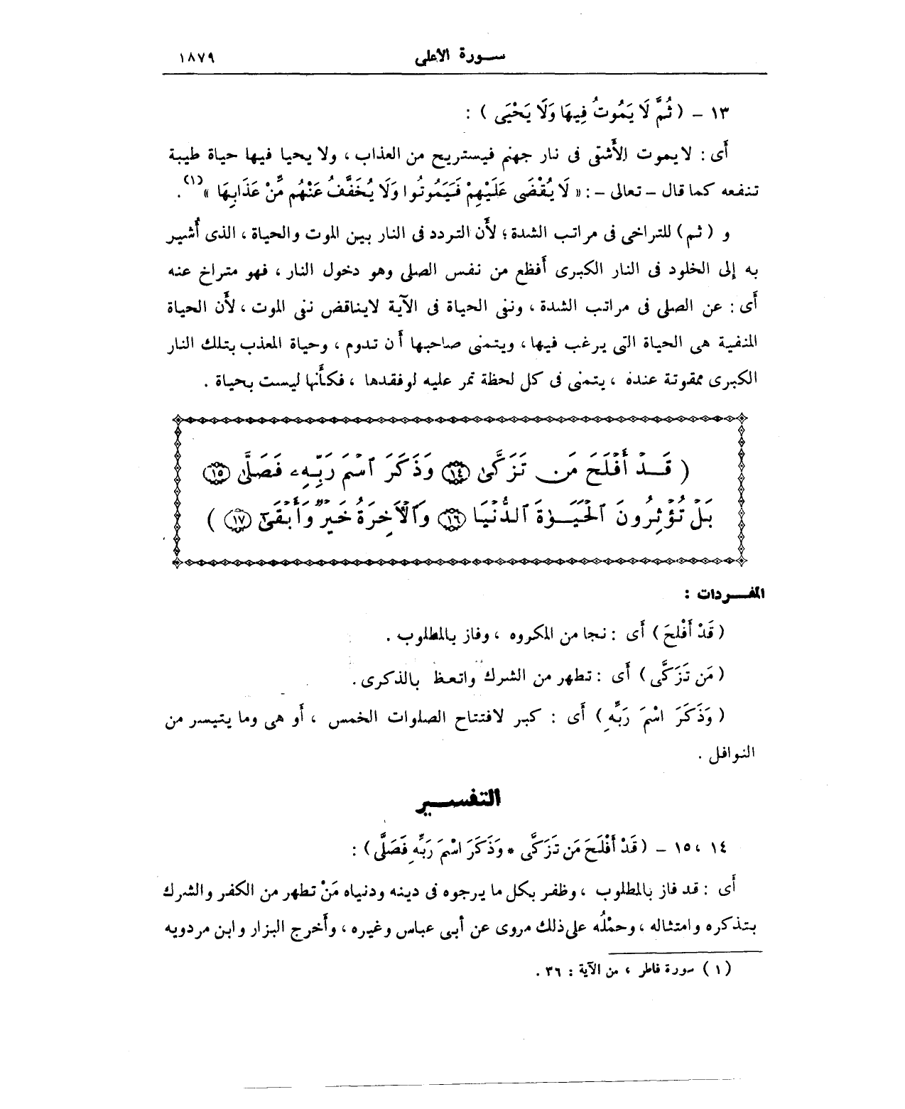 (قَدْ أَفْلَحَ مَنْ تَزَكَّى (14) وَذَكَرَ اسْمَ رَبِّهِ فَصَلَّى (15) بَلْ تُؤْثِرُونَ الْحَيَاةَ الدُّنْيَا (16) وَالآخِرَةُ خَيْرٌ وَأَبْقَى (17))