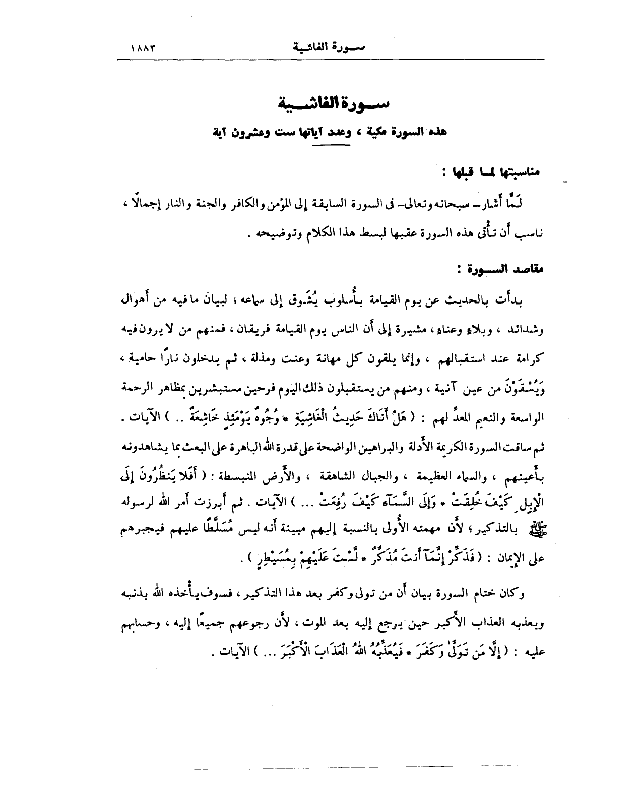 وكان ختام السورة بيان أَن من تولى وكفر بعد هذا التذكير، فسوف يأخذه الله بذنبه ويعذبه العذاب الأَكبر حين يرجع إِليه بعد الموت، لأَن رجوعهم جميعًا إِليه، وحسابهم عليه: (إِلاَّ مَنْ تَوَلَّى وَكَفَرَ * فَيُعَذِّبُهُ اللَّهُ الْعَذَابَ الأَكْبَرَ ... ) الآيات.