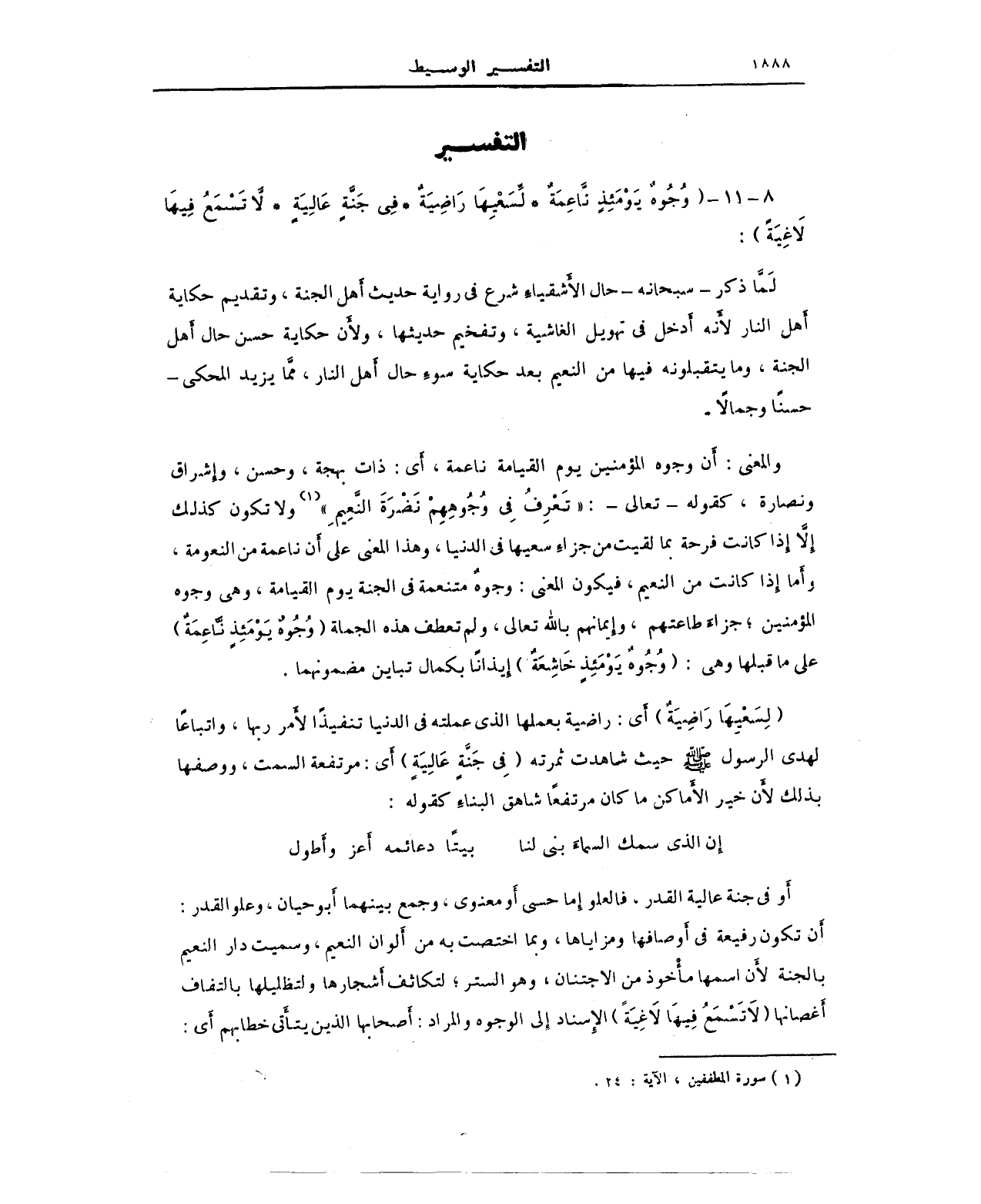 8 - 11 - (وُجُوهٌ يَوْمَئِذٍ نَاعِمَةٌ * لِسَعْيِهَا رَاضِيَةٌ * فِي جَنَّةٍ عَالِيَةٍ * لا تَسْمَعُ فِيهَا لاغِيَةً):