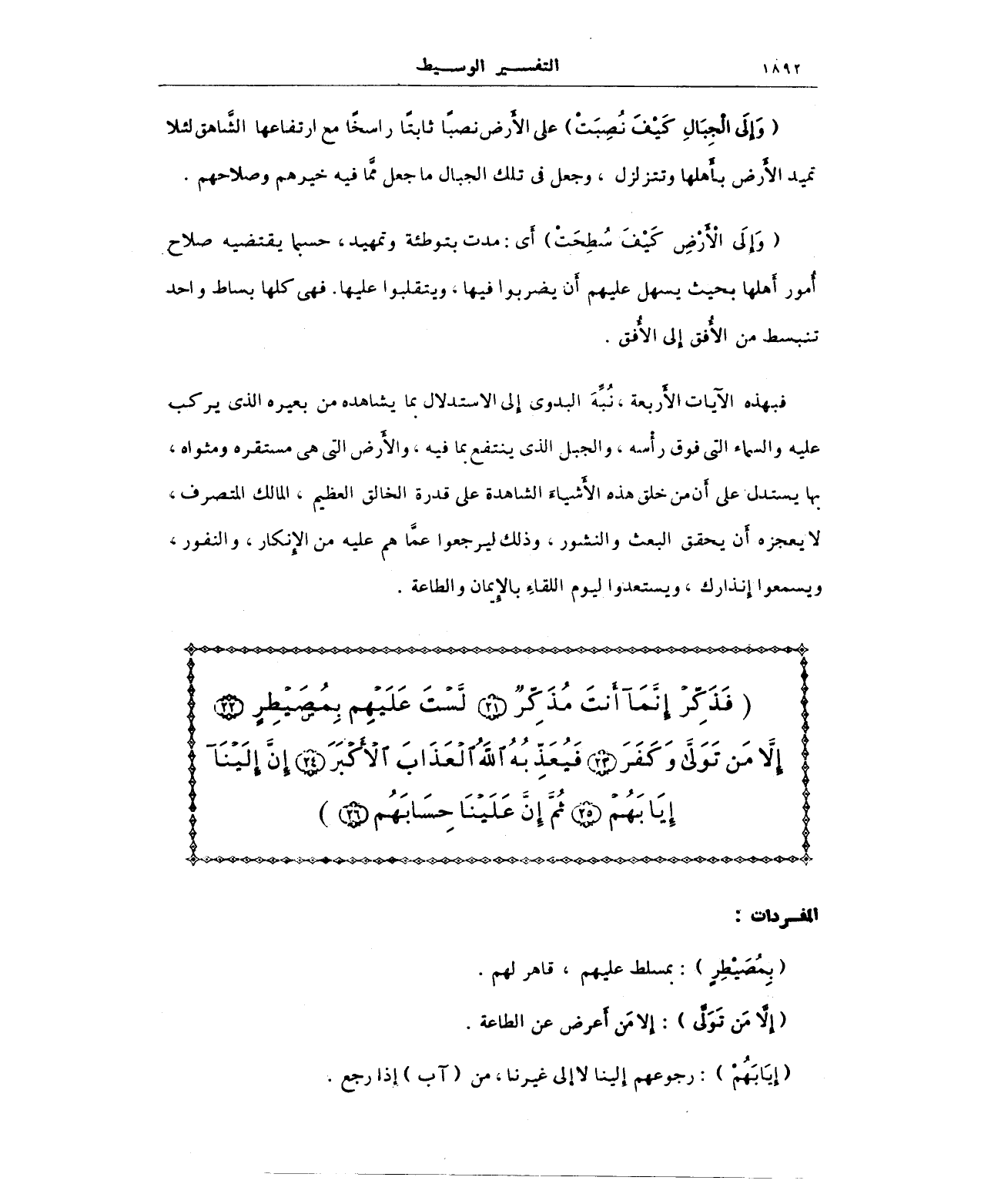 (فَذَكِّرْ إِنَّمَا أَنْتَ مُذَكِّرٌ (21) لَسْتَ عَلَيْهِمْ بِمُصَيْطِرٍ (22) إِلَّا مَنْ تَوَلَّى وَكَفَرَ (23) فَيُعَذِّبُهُ اللَّهُ الْعَذَابَ الْأَكْبَرَ (24) إِنَّ إِلَيْنَا إِيَابَهُمْ (25) ثُمَّ إِنَّ عَلَيْنَا حِسَابَهُمْ (26))