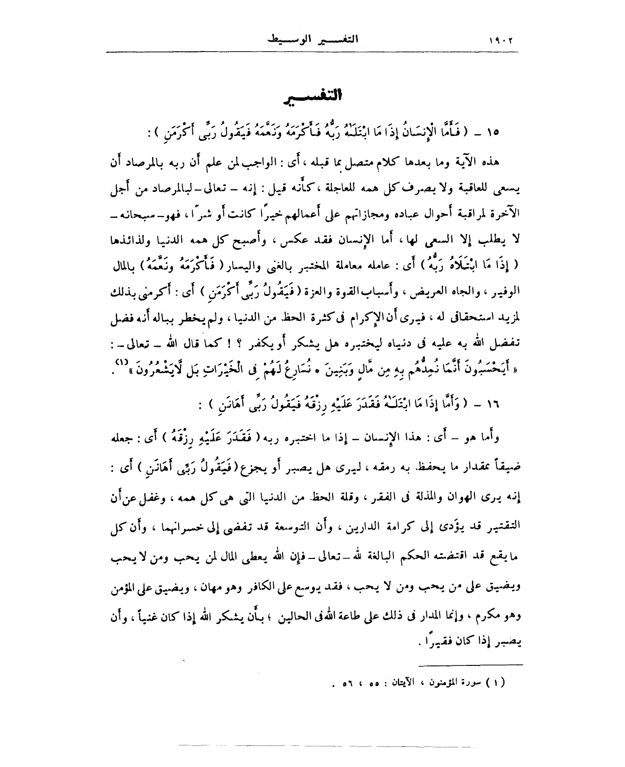 15 - (فأَمَّا الإِنسَانُ إِذَا مَا ابْتَلاهُ رَبُّهُ فأَكْرَمَهُ وَنَعَّمَهُ فَيَقُولُ رَبِّي أَكْرَمَنِ):
