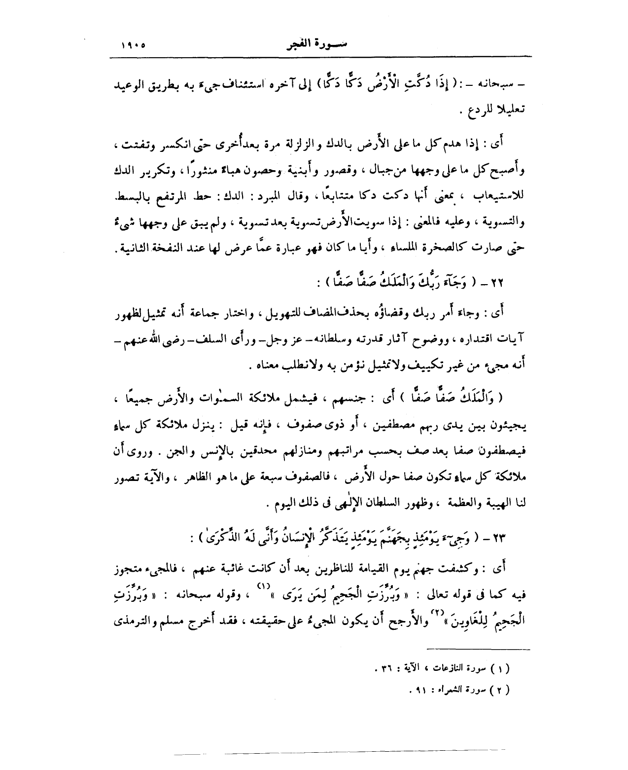 22 - (وَجَاءَ رَبُّكَ وَالْمَلَكُ صَفًّا صَفًّا):